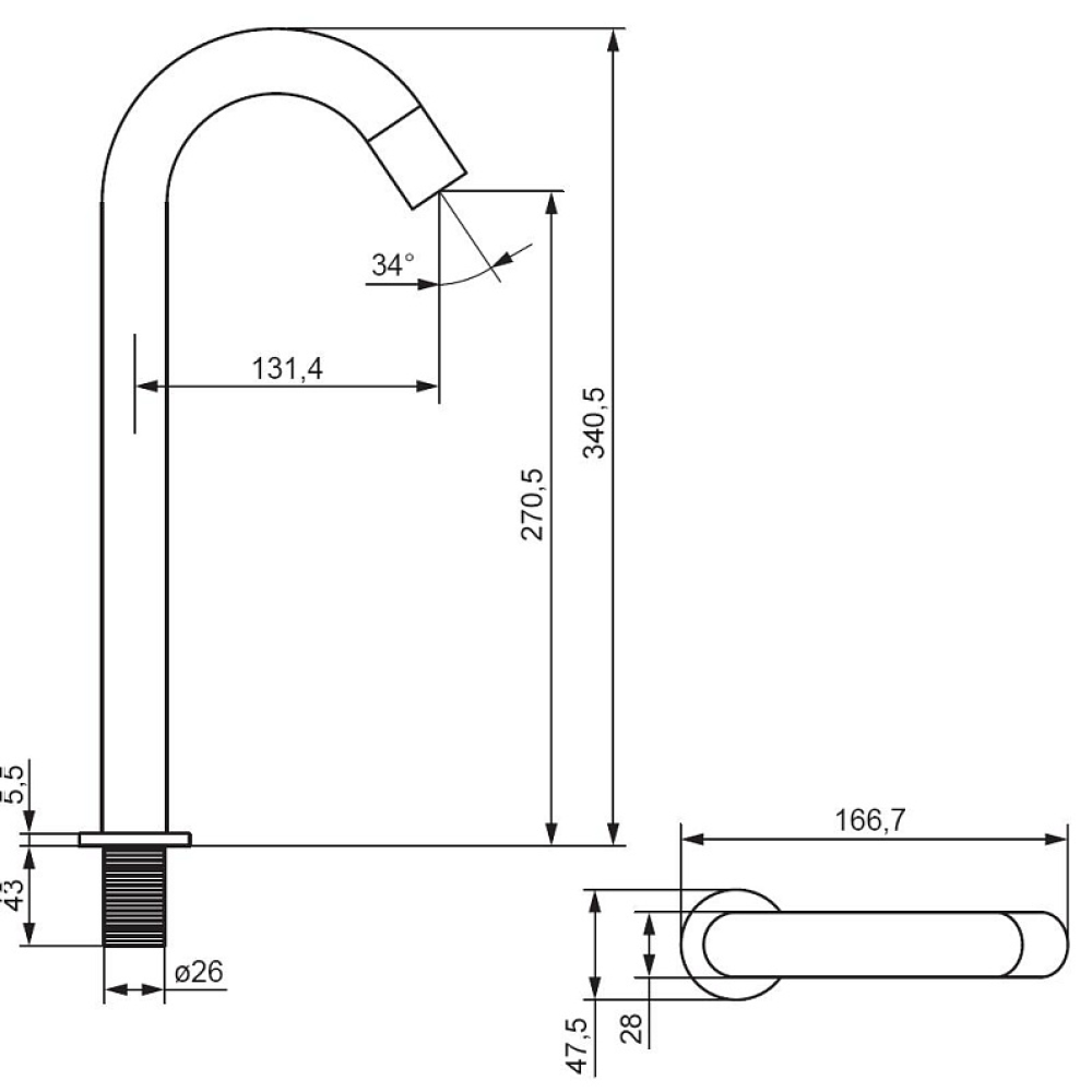 Высокий излив – высота 34.05 см, вылет 13.14 см