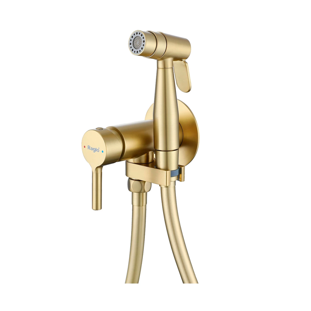 Основные характеристики: • Стиль: современный • Цвет: сатин золотой • Материал корпуса: латунь • Форма:округлая • Монтаж: встраиваемый • Кол-во отверстий для монтажа: 1 • Держатель для лейки с уголом поворота 180° • Размещение лейки с правой или левой стороны • Тип управления: одноручковый • Гигиеническая лейка: 2- режимная функциональная лейка • Гигиенический шланг: взрывозащищенный силиконовый 1,2 м • Тип подключения: F1/2"