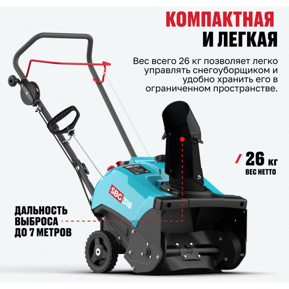 Бензиновая снегоуборочная машина ALTECO SBG 318 – компактный и удобный бытовой снегоуборщик, созданный для эффективной очистки снега на частных участках и придомовых территориях. Легкий вес и эргономичная конструкция обеспечивают простое управление, а все основные функции удобно регулируются с панели оператора. Экономичный двигатель и обрезиненный шнек делают работу безопасной для тротуарной плитки и асфальта, а дальность выброса до 7 метров позволяет быстро освобождать дорожки и подъезды даже после обильного снегопада.