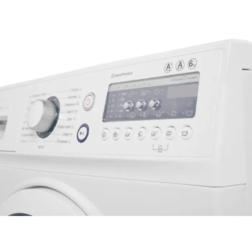 Максимальная загрузка белья составляет 6 кг, что говорит о крайней вместительности модели. Наличие функции отсрочки запуска позволит запрограммировать стирку на ближайшее время, на случай, если владелец аппарата уходит из дома (процесс начнется в течение 24 ч). К возвращению хозяина, белье будет свежим и чистым. Диаметр люка составляет 340 мм, за счет чего обеспечивается комфортная загрузка белья для стирки и его извлечение после нее. Характерный звуковой сигнал оповестит об окончании стирки, таким образом, влажное белье не останется в закрытом пространстве и не приобретет неприятный запах.