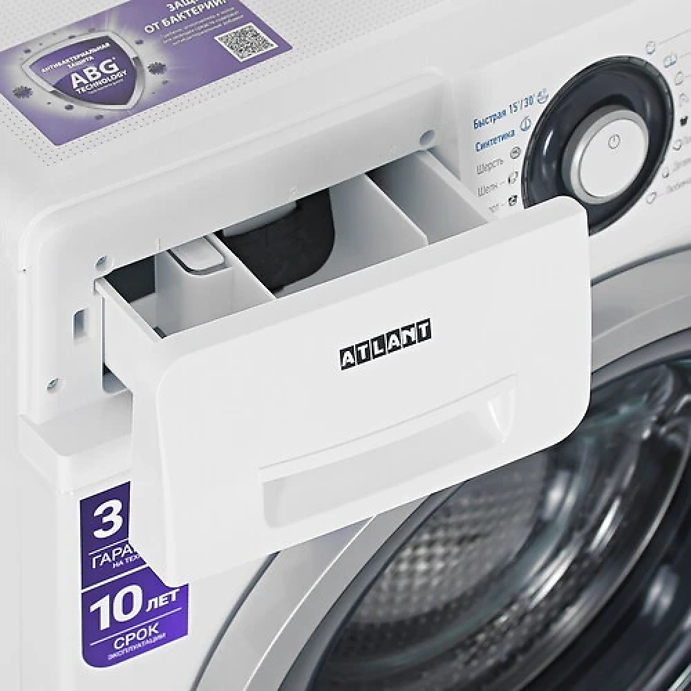 ATLANT СМА 60У1213-01 дополнена удобными режимами добавления воды во время стирки, предварительного замачивания и дополнительного полоскания. Надежная защита от протечек и скачков напряжения отвечает за безопасность и долгий срок службы машины. Функция автобаланса не позволяет белью сбиваться в тяжелый комок, защищает от появления опасной вибрации.