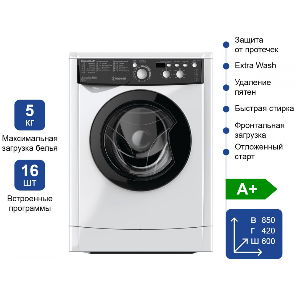 Стиральная машина Indesit EWSD 51031 BK CIS с загрузкой до 5 кг белья и максимальной скоростью отжима 1000 об/мин получила специальный датчик Water Balance Plus. С его помощью регулируется расход воды исходя из загрузки белья, благодаря чему обеспечивается экономия энергопотребления, расхода воды и времени, затрачиваемого на стирку. Функция Extra Wash позволит справиться с засохшими и стойкими пятнами без вреда для структуры ткани. Воспользуйтесь ею, чтобы удалить с одежды, к примеру, шоколад или кофе, и наслаждайтесь превосходными результатами стирки. Для изделий из хлопка в стиральной машине Indesit EWSD 51031 BK CIS предусмотрены программы «Хлопок 60°» и «Хлопок 40°». Для кроссовок имеется специальный режим стирки «Спортивная обувь»: устройство обеспечит для них эффективную и в то же время деликатную стирку. Спортивная одежда также получила отдельную программу «Спорт», при которой во время стирки неприятные запахи и загрязнения, возникающие во время физических нагрузок, удалятся с вещей. Белоснежный корпус гармонично сочетается с черной панелью управления и люком, благодаря чему стиральная машина будет хорошо смотреться в любом интерьере.