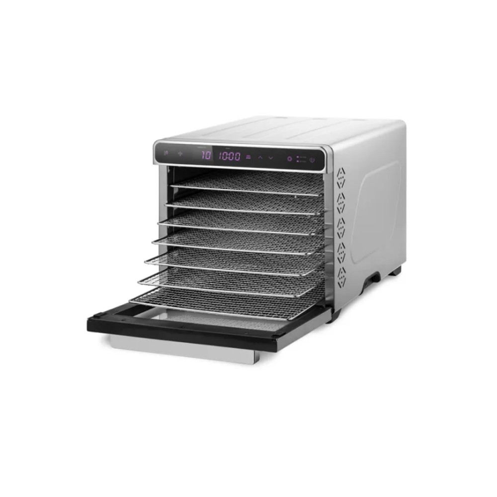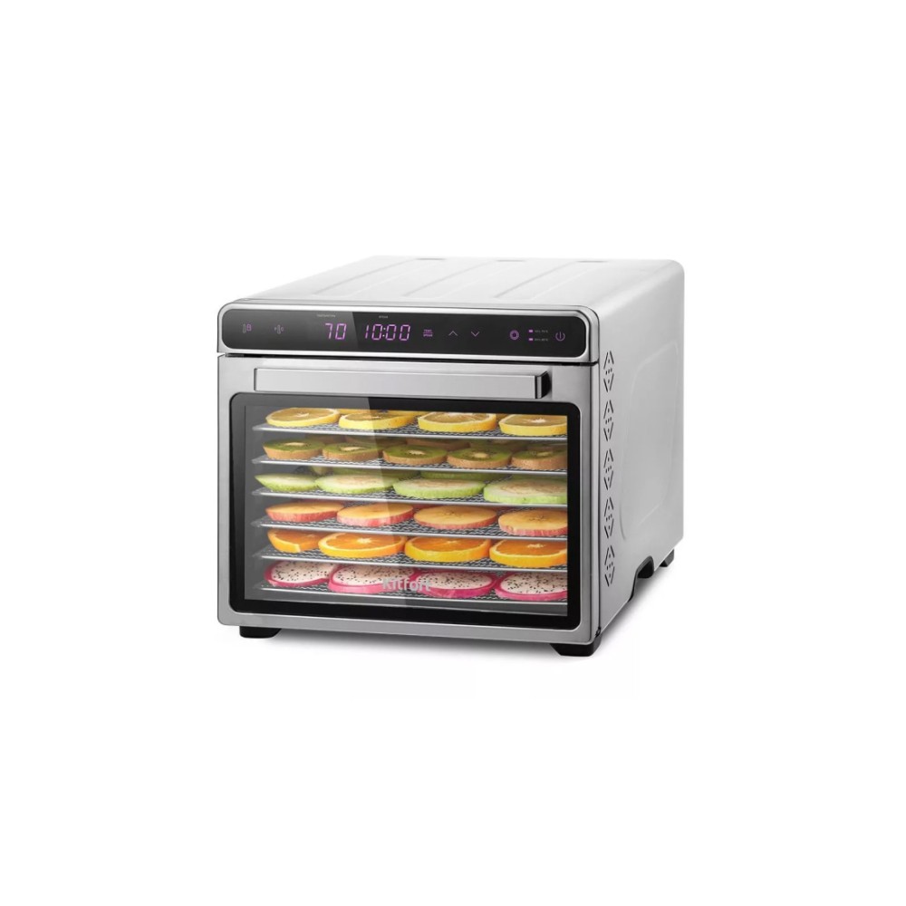 С электрической сушилкой для фруктов и овощей Kitfort KT-1925 у вас под рукой будет всегда живая еда. Прибор насушит на всю зиму мясо, рыбу, помидоры, кабачки, клубнику, абрикосы, персики, тыкву, грибы, зелень, хлеб, а с помощью поддонов можно готовить пастилу. У сушилки есть 3 предустановленных режима. Первый режим – для поддержания тепла, где после окончания сушки продуктов устройство будет ещё работать 24 часа с температурой 35°С. И два режима с уже установленными параметрами для быстрой и медленной сушки. На сушилке можно устанавливать температуру сушки в диапазоне 35-75°C с шагом 5 градусов. Сушилка также оснащена таймером до 24 часов с шагом 30 минут.