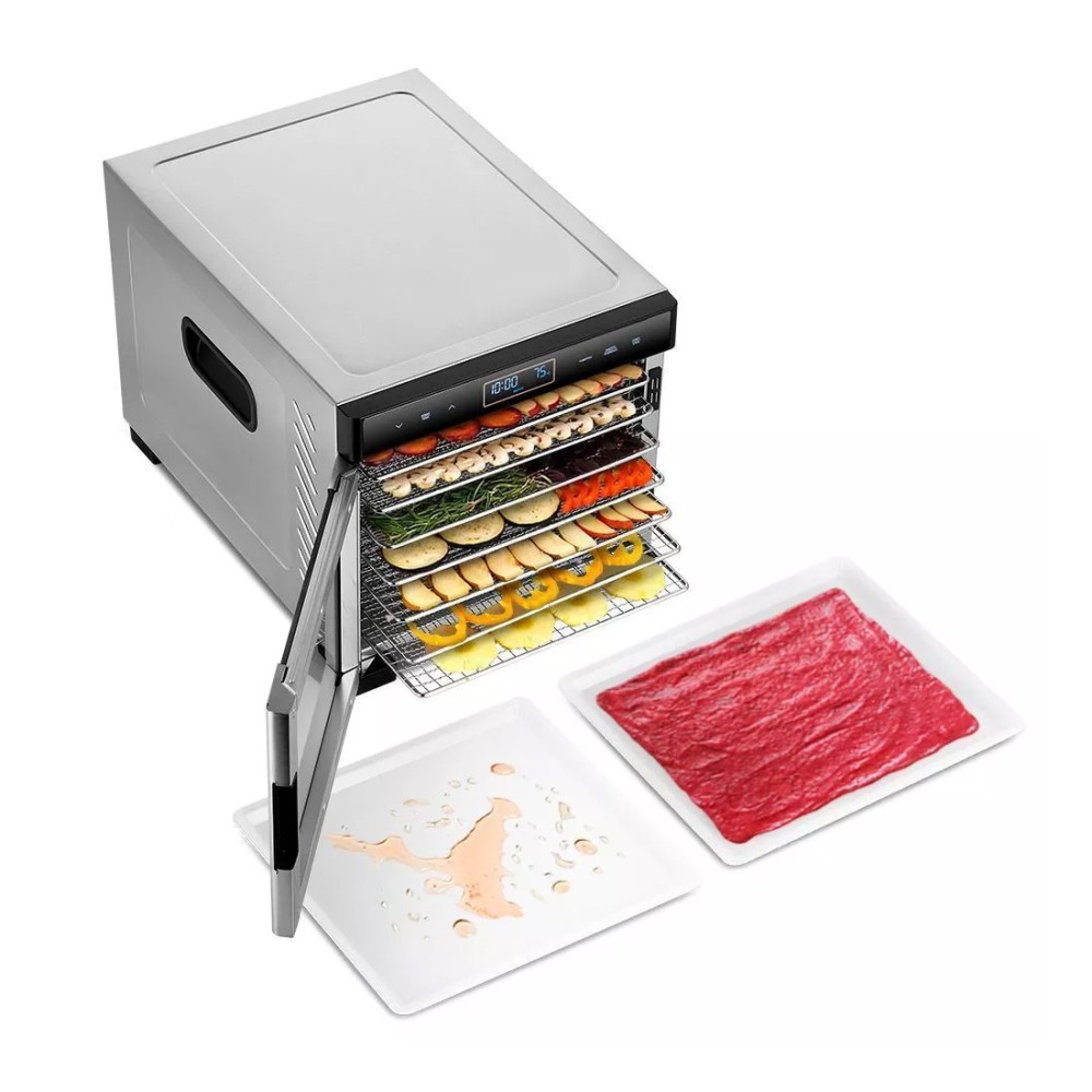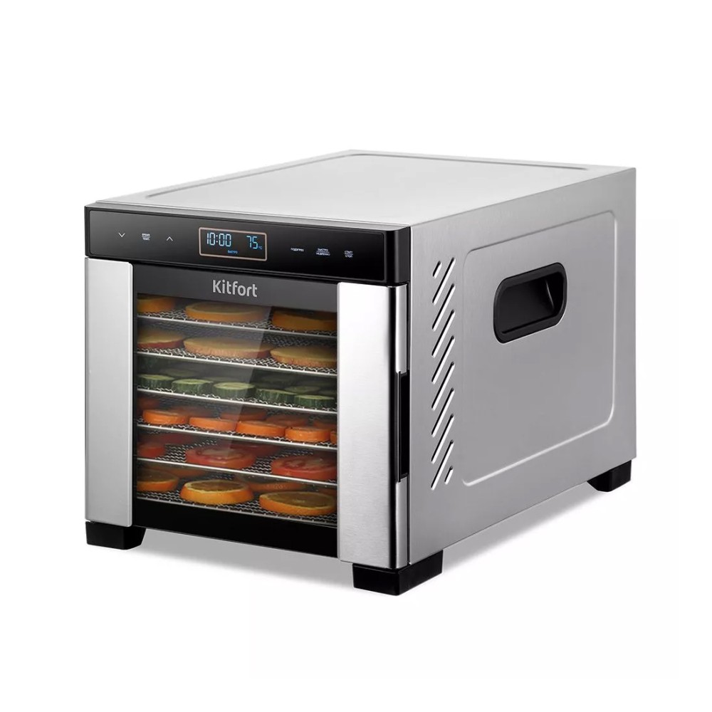 Дегидратор Kitfort KT-1989 предназначен для сушки овощей, фруктов, ягод, грибов, корнеплодов, трав, а также мяса, рыбы, хлеба. Вмещает в себя 7 поддонов, поэтому за раз может насушить большую порцию полезных и вкусных лакомств.