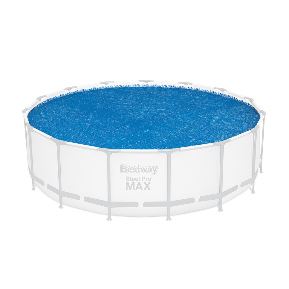Защитное солнечное покрывало Bestway для защиты бассейна от мусора, а также для сохранения тепла и нагрева воды в солнечный день. Предназначено для бассейнов диаметром 488 см (d 462 см). Покрывало расстилается на водной глади бассейна закрывая всю открытую поверхность.