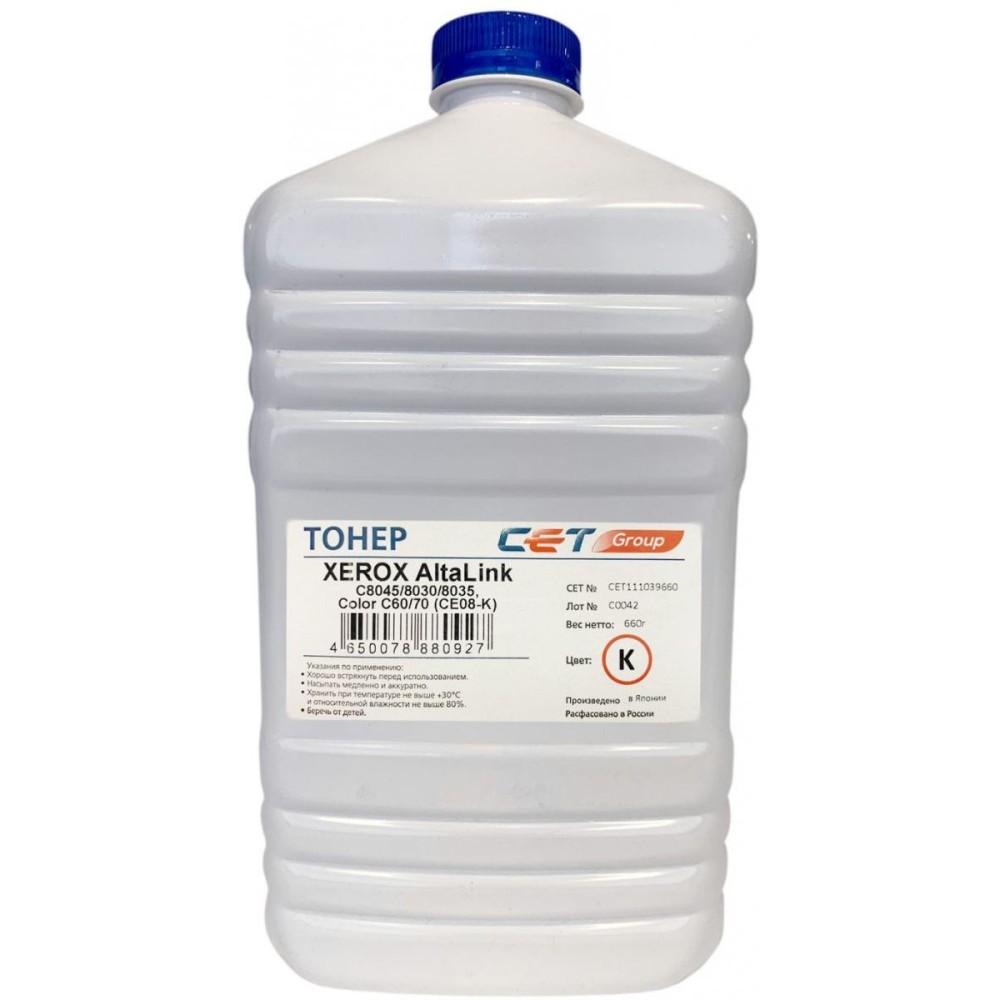 Тонер CE08‑K (CPT) для Xerox AltaLink C8045/8030/8035, Color C60/70 (Japan), Black, 660 г/бут, универсальный, модель CET111039K‑660N — это высококачественный черный тонер для заправки картриджей лазерных принтеров и МФУ Xerox. Он совместим с моделями AltaLink C8045, C8035, C8030 и Color C60/70, обеспечивает стабильную печать с четким глубоким черным цветом и подходит для офисного и профессионального использования. Упаковка содержит 660 г тонера, достаточных для полноценной заправки картриджа, а универсальная формула позволяет использовать его в устройствах с аналогичными характеристиками.