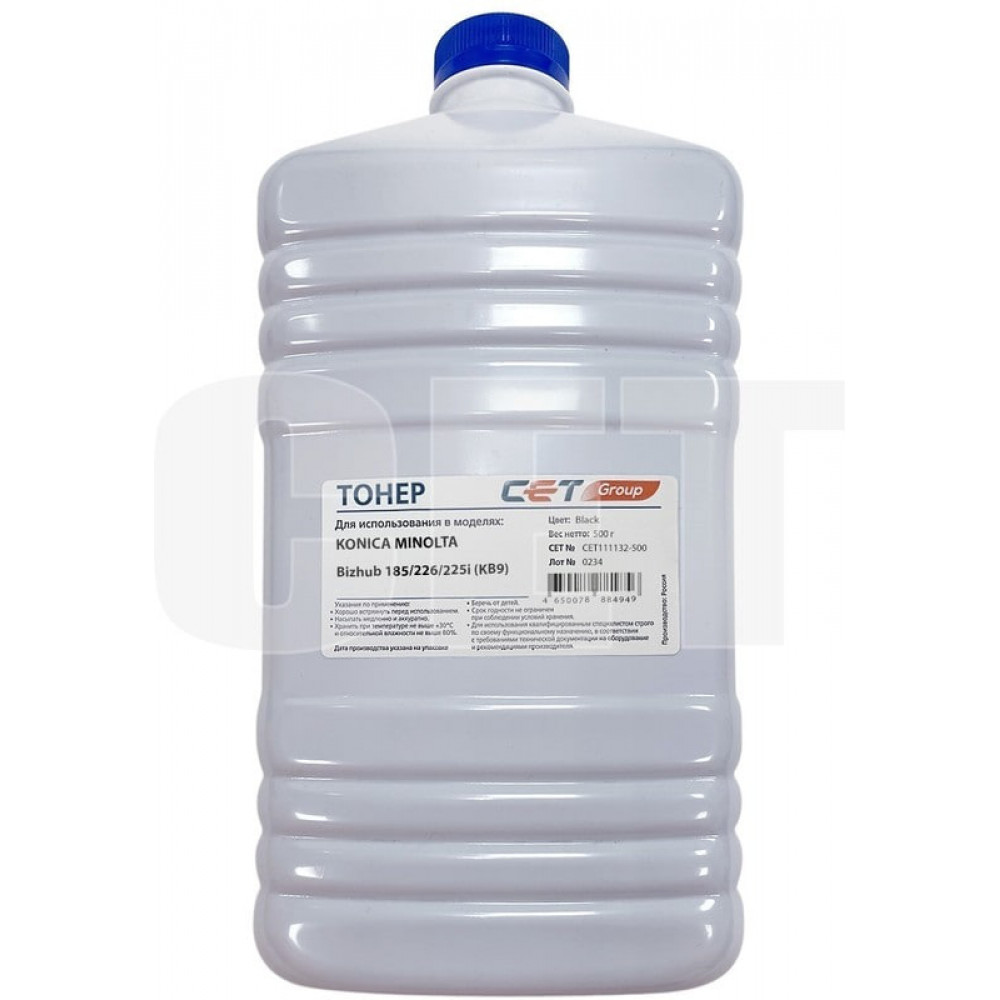 Тонер KB9 TN-116/TN-118 для KONICA MINOLTA Bizhub 185/226/225i (CET), 500 г/бут (универсальный), CET111132-500 предназначен для заправки лазерных принтеров и МФУ. Является аналогом оригинальных расходных материалов с OEM-кодами TN-116, TN-117H, TN-118, TN-119, TN-222, TN-225. Подходит для широкого ряда устройств KONICA MINOLTA, включая модели Bizhub 164, 184, 185, 185e, 195, 205i, 215, 225i, 226i, 235, 246i, 266, 266i, 306, 306i, 7718, 7718e, 7719, 7818, 7818e.