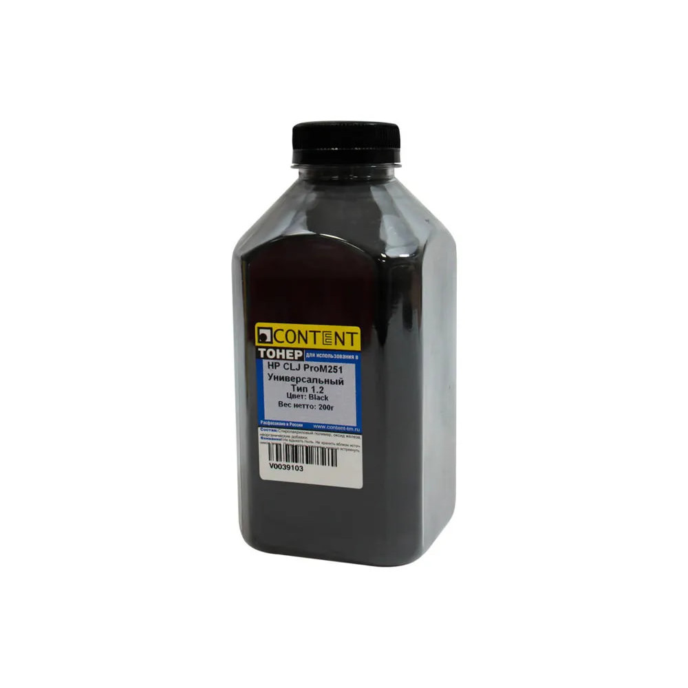 Тонер Content Универсальный Тип 1.2 для HP Color LaserJet Pro M251 — профессиональный тонер чёрного цвета, разработанный для получения четких и насыщенных отпечатков. Обеспечивает стабильную печать без серого фона, разводов и полос даже при больших объемах работ.