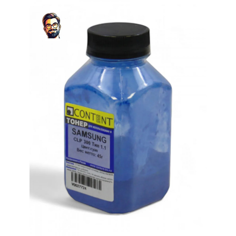 Тонер Content для Samsung CLP-300, Тип 1.1, голубой (C), 45 г — это качественный универсальный расходный материал для заправки лазерных картриджей принтеров Samsung серии CLP-300. Порошок обеспечивает яркую и равномерную передачу голубого цвета, точность цветопередачи и чёткую печать графики и текста без постороннего фона. Тонер оптимизирован для стабильной работы устройства и позволяет восстанавливать ресурс картриджей, продлевая срок их службы. Упакован в удобную пластиковую банку объёмом 45 г, подходит как для домашних пользователей, так и для сервисных центров.