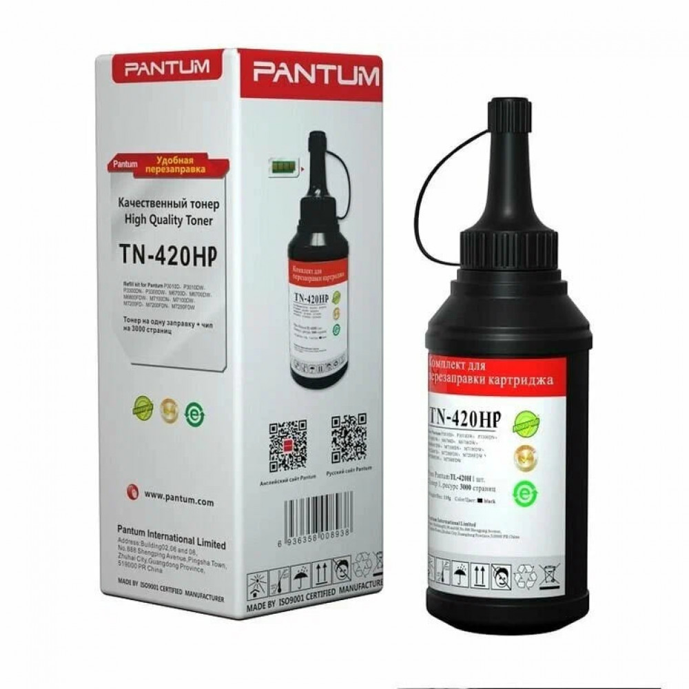 Комплект для заправки Pantum TN-420HP включает в себя 1 чип и 1 бутылку тонера, предназначенные для использования с картриджами моделей TL-420E, TL-420, TL-420H и TL-420X. Каждый чип рассчитан на печать до 3000 страниц, а одна бутылка тонера позволяет напечатать до 3000 страниц, обеспечивая качественную и экономичную печать. Этот комплект идеально подходит для восстановления расходных материалов и поддержания высокого качества печати принтеров Pantum.
