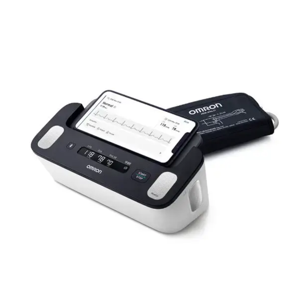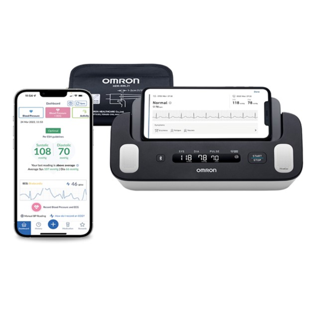 OMRON Complete - это точный и простой монитор артериального давления с функцией записи ЭКГ. Этот монитор регистрирует измерения и отслеживает данные. Клинически проверенный OMRON Complete - это интеллектуальный домашний монитор артериального давления и ЭКГ 2-в-1, который позволяет легко, мгновенно и точно получать результаты. Простое измерение двух важнейших параметров одним движением, позволяющее без труда контролировать состояние сердца, не выходя из дома. Быстрая проверка на наличие сразу нескольких сердечных заболеваний, включая: Нарушения сердечного ритма, такие как мерцательная аритмия, тахикардия, брадикардия, а также гипертония.