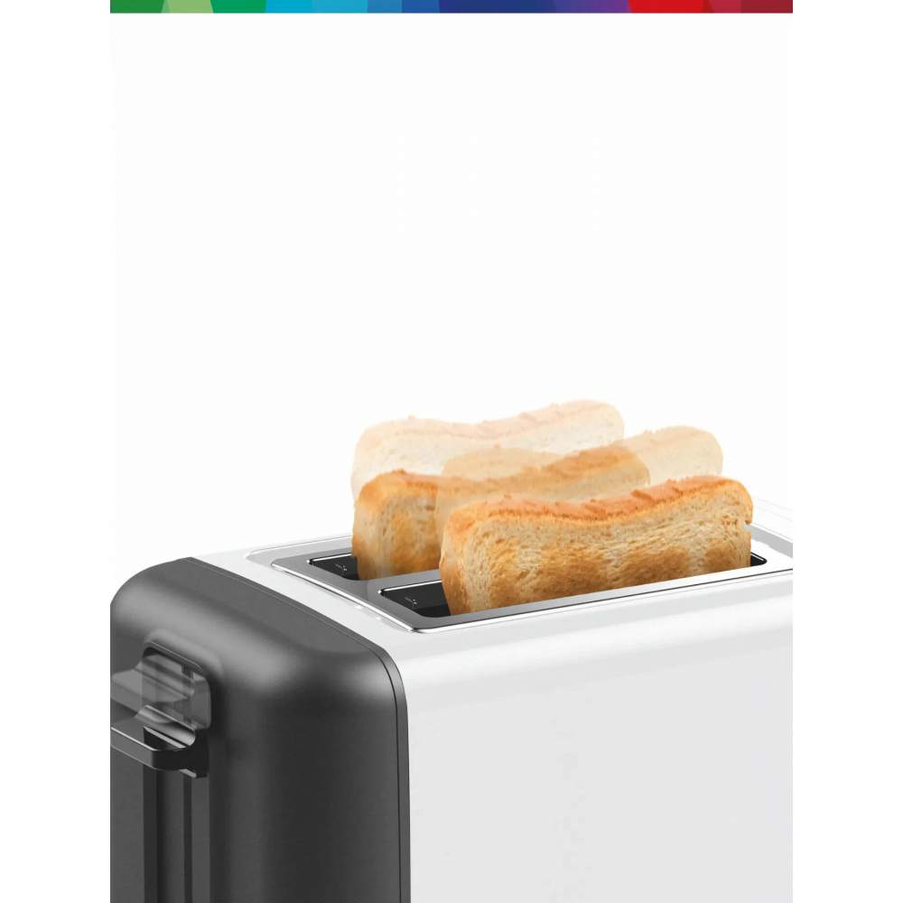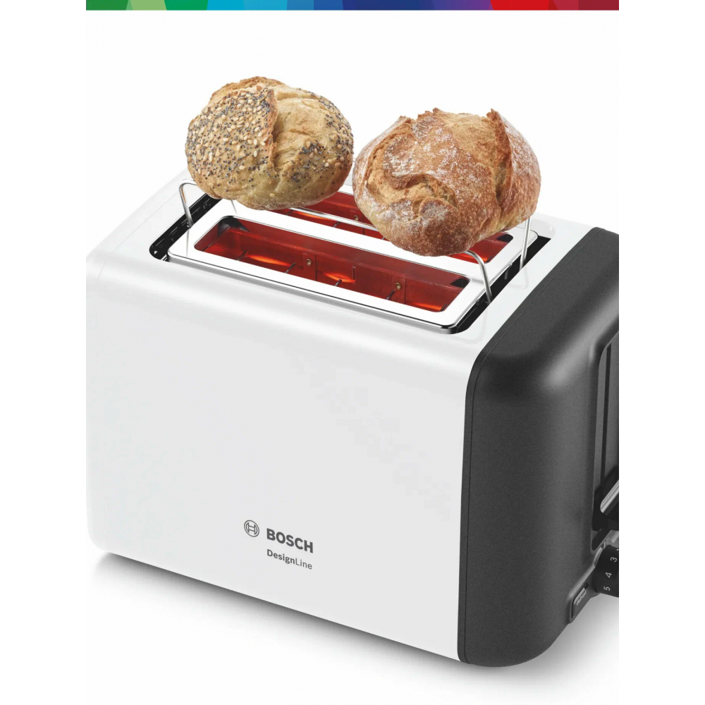 Bosch TAT3P420 — компактный тостер с двумя отделениями и функциями подогрева, разморозки и автоцентрирования ломтиков. Имеет 6 степеней обжаривания, съёмный поддон для крошек и автоматическое отключение. Подходит для ежедневного использования дома.