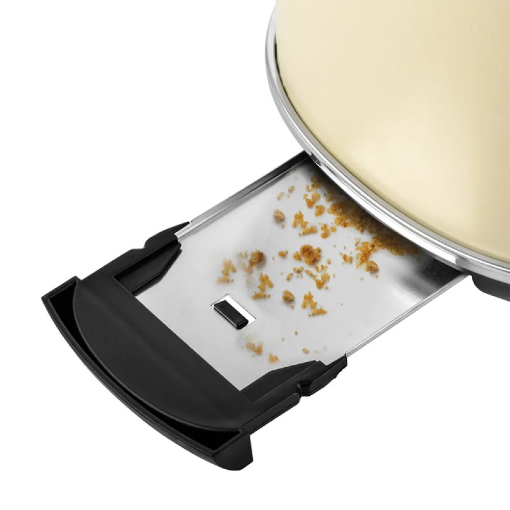 Благодаря широким слотам можно поджаривать толстые куски хлеба, а не только тонкие. Загруженные тосты автоматически центрируются, чтобы их обжарка с двух сторон была равномерной независимо от толщины куска. По окончании приготовления тосты поднимаются вверх. Механизм экстра-подъёма позволяет приподнять тосты выше для удобного извлечения тостов небольшого размера. Снизу расположен выдвижной поддон для крошек, поэтому чистить тостер просто и удобно.