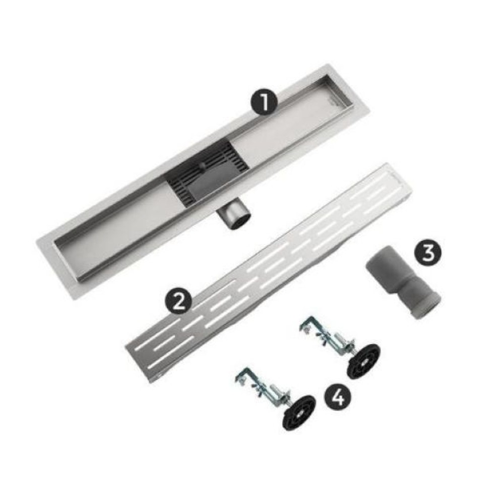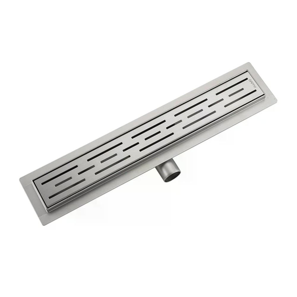 Линейный трап Gappo G88007-1, длина 80 см, цвет сатин, изготовлен трап из нержавеющей стали. Минимальная монтажная высота 85 мм, боковой выпуск 40 мм, в комплекте переходник на 50 мм. Защита от запаха: комбинированный гидрозатвор, защита от проникновения запаха и жидкости из канализации.