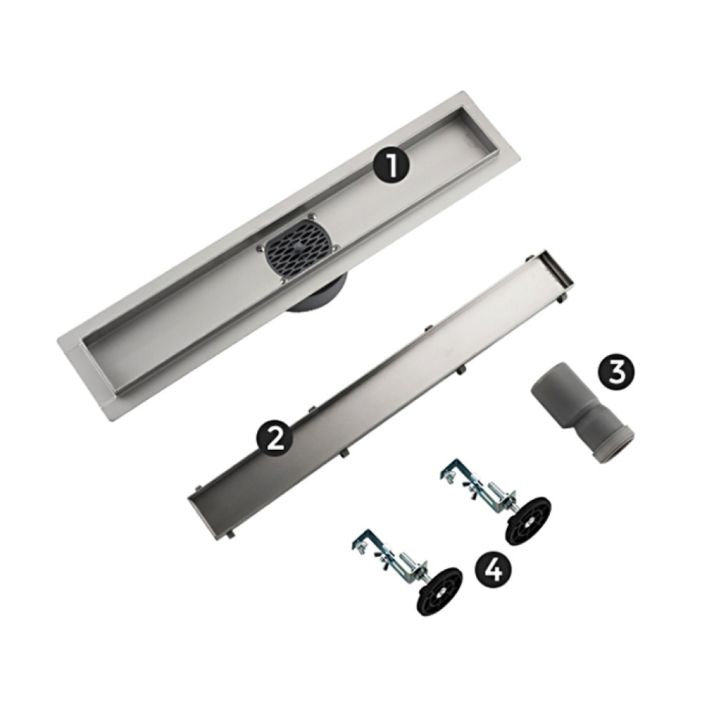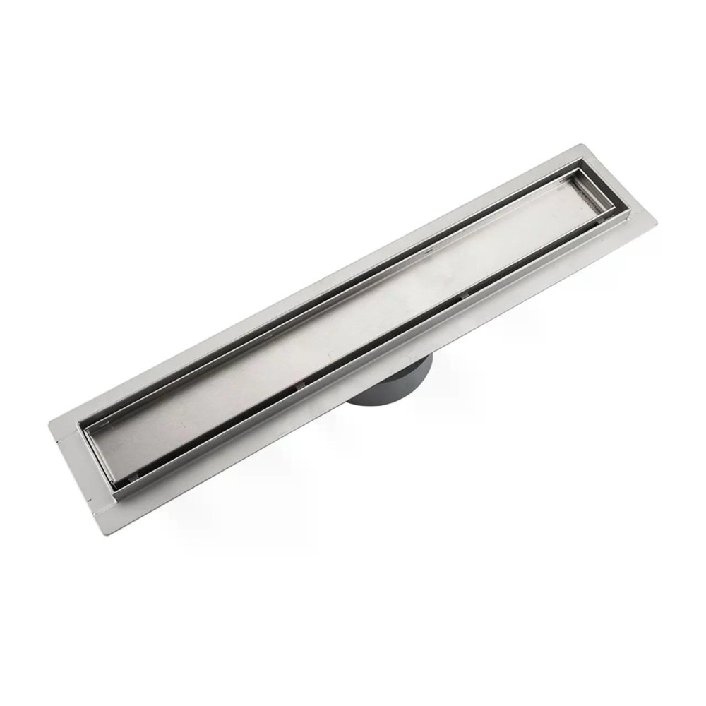 Душевой трап с поворотным выпуском Gappo G88007-4, длина 80 см, цвет сатин, изготовлен трап из нержавеющей стали. Минимальная монтажная высота 85 мм, поворотный боковой выпуск 40 мм, в комплекте переходник на 50 мм. Защита от запаха: комбинированный гидрозатвор, защита от проникновения запаха и жидкости из канализации.