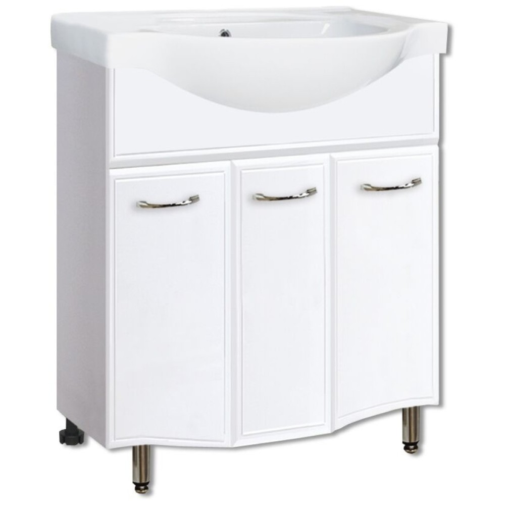 Корпус и фасады изготовлены из влагостойких материалов, устойчивых к перепадам температуры и воздействию влаги, что важно для эксплуатации в ванной комнате. Тумба оснащена вместительными отделениями для хранения бытовых принадлежностей, позволяя поддерживать порядок и экономить пространство. Надёжная фурнитура обеспечивает плавное открывание и долговечность конструкции, а компактные размеры делают модель подходящей как для просторных, так и для небольших ванных комнат.