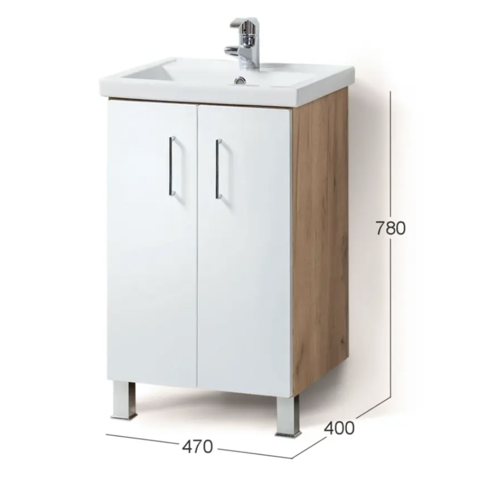 Тумба SANITEСO Янтарь 50 напольная, 2 двери, белая (под раковину Фостер 50) — функциональная тумба под раковину. Используется для хранения принадлежностей в ванной комнате, выполнена из влагостойких материалов и устойчива к условиям повышенной влажности.