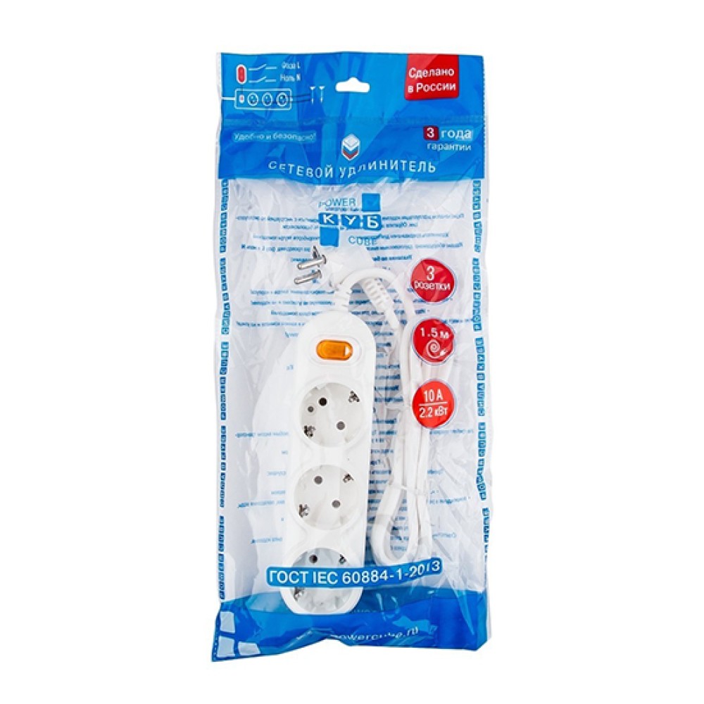Удлинитель Power Cube со шнуром 1,5 метра предназначен для подключения электроприборов. На корпусе устройства есть три розетки с заземлением, ручной выключатель и световая индикация. Прибор способен решить проблему нехватки свободных розеток в доме или офисе. Подключая его к свободной стационарной розетке, вы получаете возможность подключить еще два любых прибора от зарядки для смартфона до электрического чайника. Удлинитель имеет высокую степень пылевлагозащиты IP20.