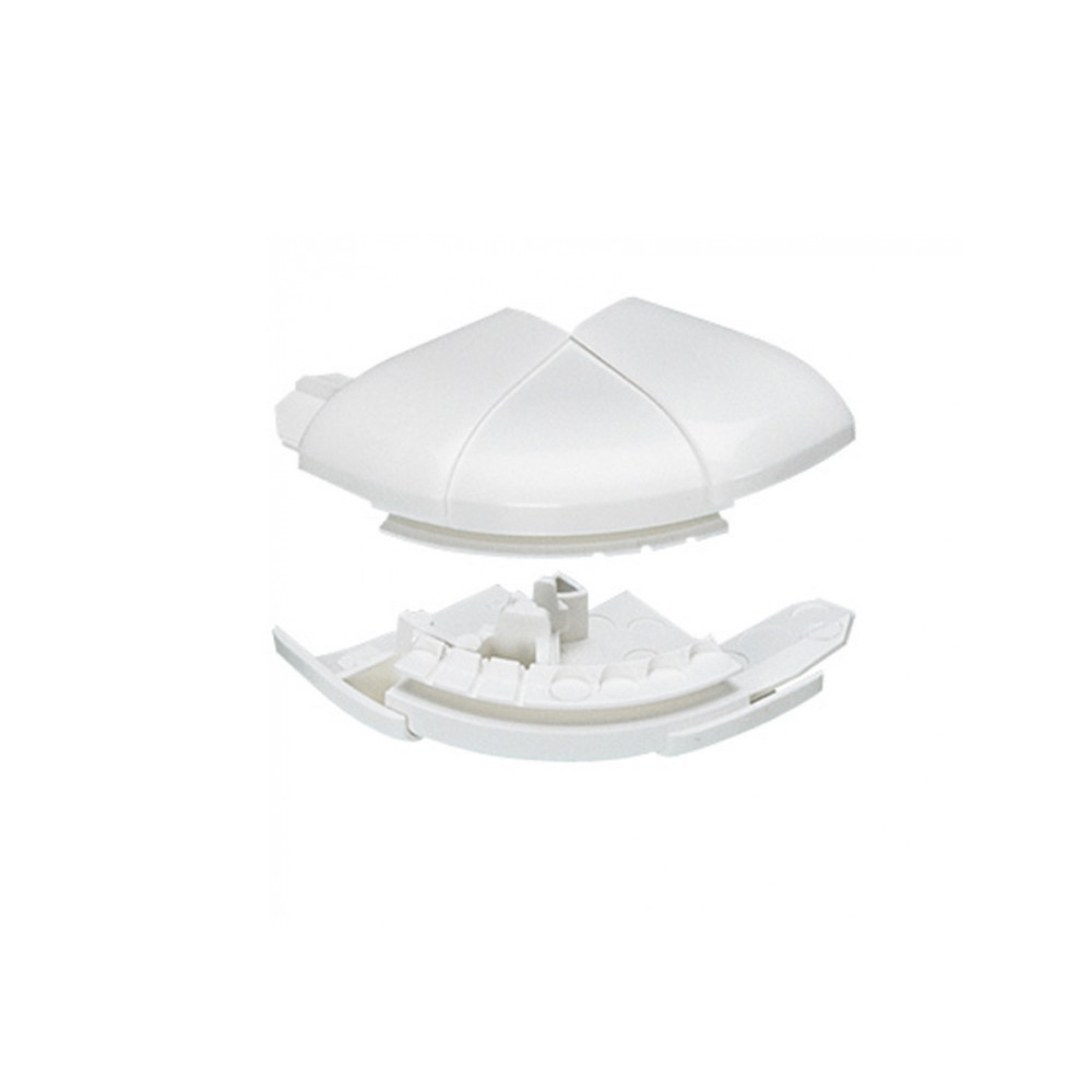 Суппорты под электроустановочное оборудование следует устанавливать на расстоянии не менее 100 мм от краев угла. Углы защелкиваются на корпусе кабель-канала. Допускается установка на кабель-каналы с разделительными / несущими перегородками или без них. Предназначены для установки под углом 60–120°. Вешние углы включают в себя 2 элемента – для верхней и нижней частей кабель-канала, между которыми устанавливается гибкая крышка.