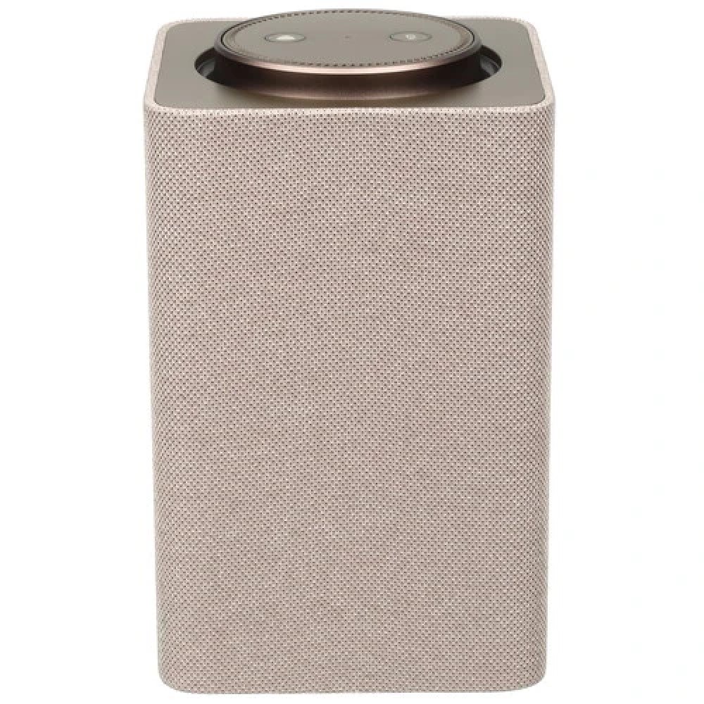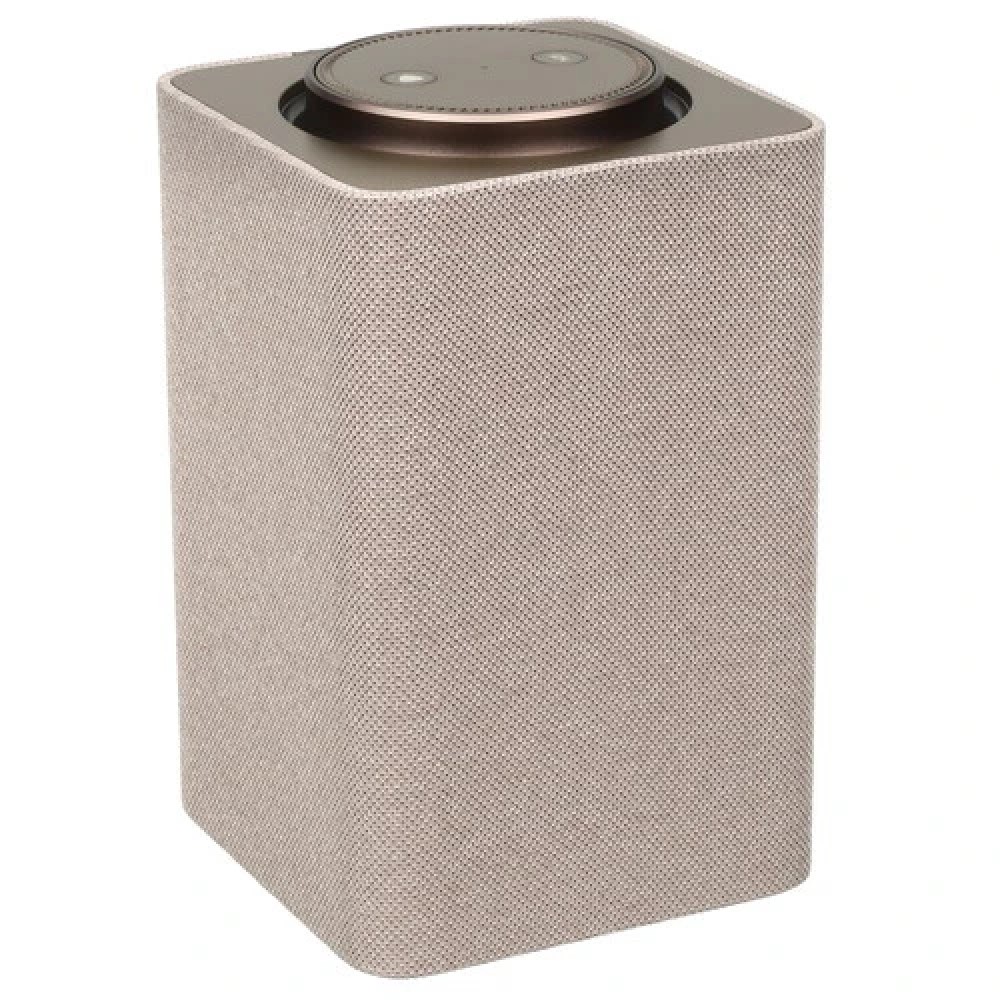 Умная колонка Яндекс.Станция Макс выпускается в пластиковом корпусе, обтянутом перфорированной тканью бежевого цвета. Звук трехполосный, низкие, средние и высокие частоты играют из 5 разных динамиков общей мощностью 65 Вт. Дополнительный среднечастотный динамик создает стереоэффект.