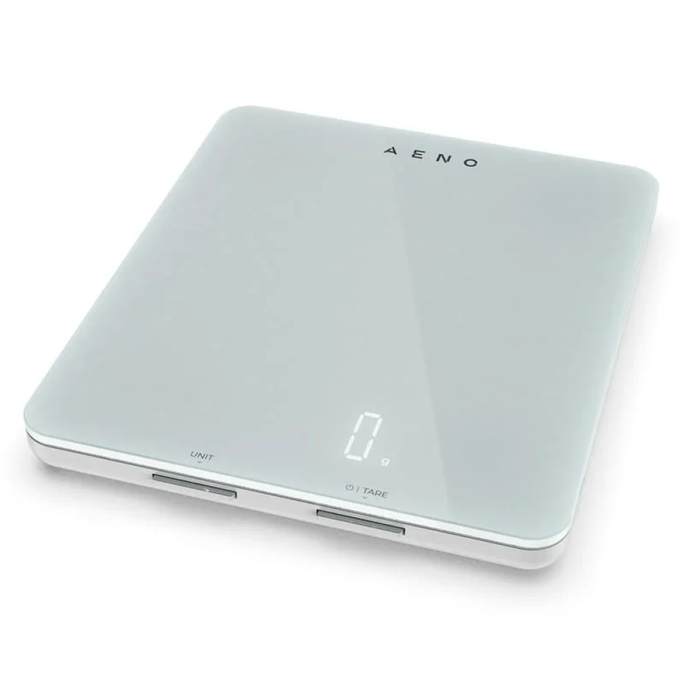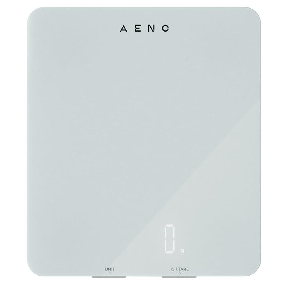 Умные кухонные весы AENO KS1S, максимальная нагрузка - 8 кг, Bluetooth, более 10 000 продуктов и блюд, анализ по 25 показателям, режим для кофе, 6 единиц измерения: кг, г, фунты, унции, жидкие унции, мл, материал - стекло.