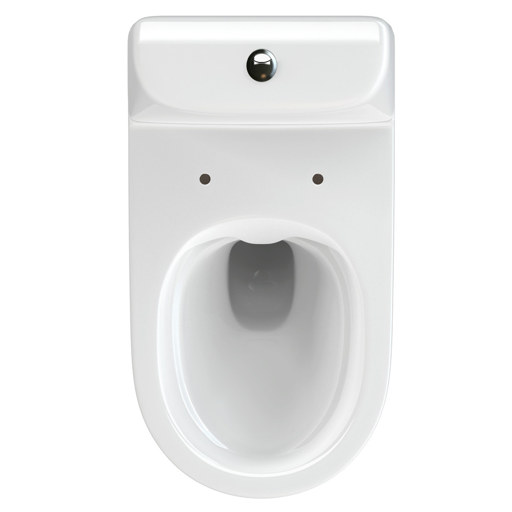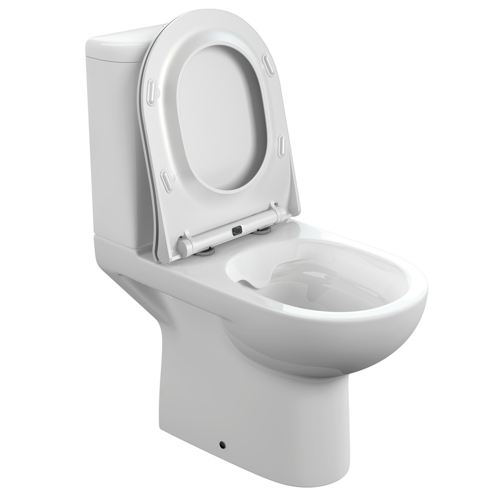 Модель оснащена ультратонким дюропластовым сиденьем с микролифтом и функцией лёгкого снятия, что упрощает чистку. Двухрежимный круговой слив (3/5 л) экономно расходует воду, а система антивсплеск повышает комфорт использования.
