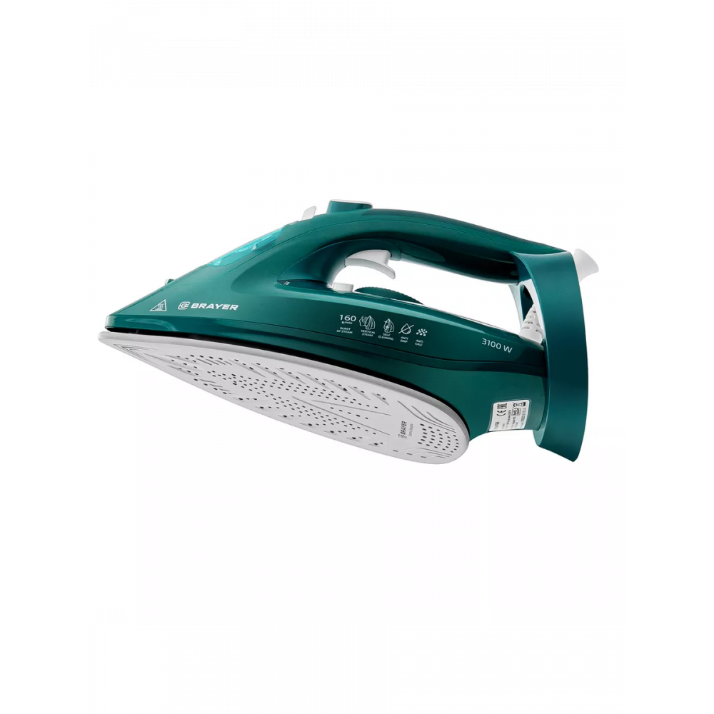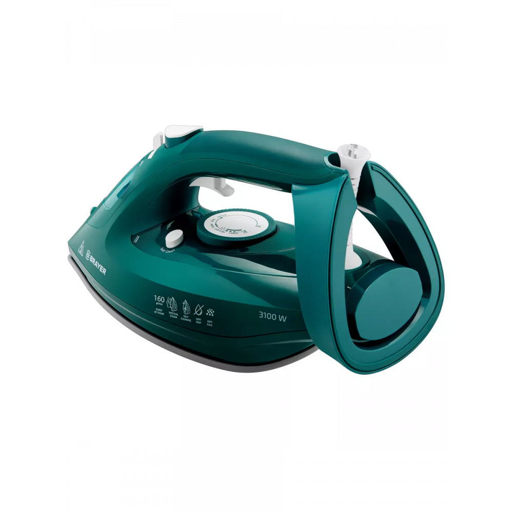 BRAYER 4013BR — мощный утюг с керамической подошвой, вертикальным отпариванием и паровым ударом 160 г/мин. Оснащён системой защиты от накипи, функцией самоочистки, автоотключением и резервуаром на 265 мл. Идеален для плотных тканей и интенсивной глажки.