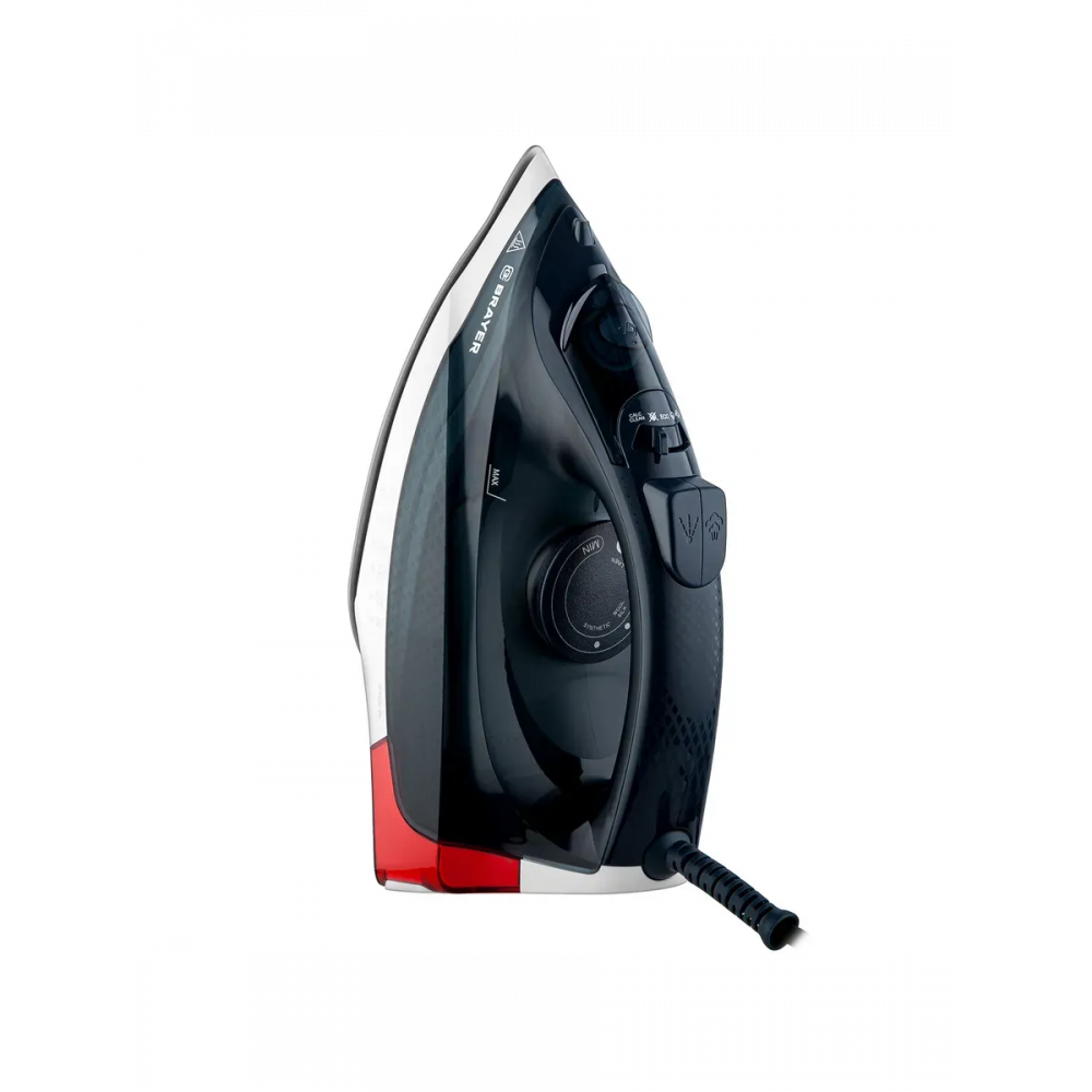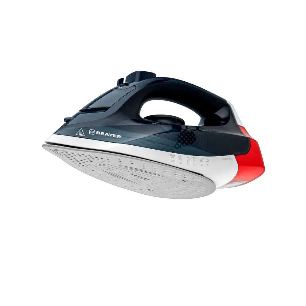 BRAYER 4018BR — утюг с керамической подошвой, мощностью 2400 Вт и резервуаром на 350 мл. Оснащён функцией вертикального отпаривания, паровым ударом 140 г/мин, системой защиты от накипи, автоотключением и функцией самоочистки. Идеален для комфортной глажки любых тканей.