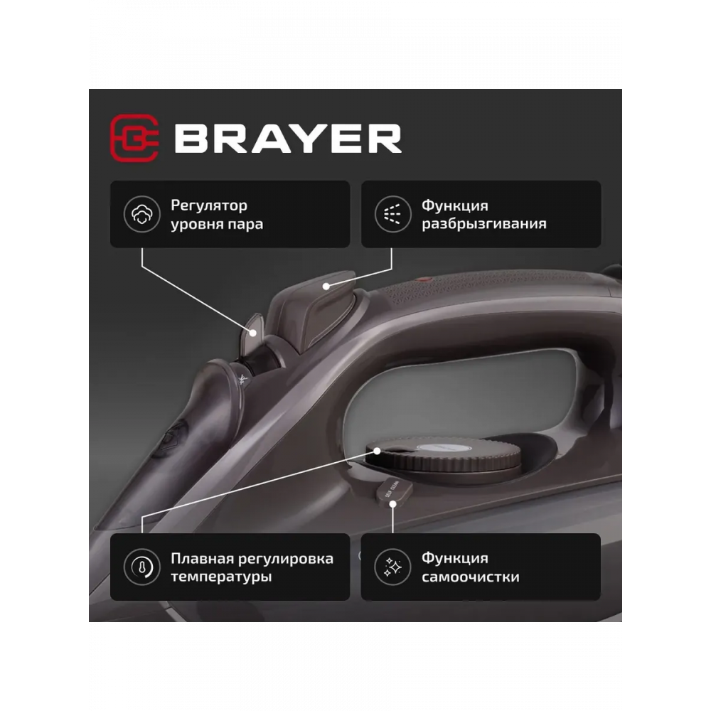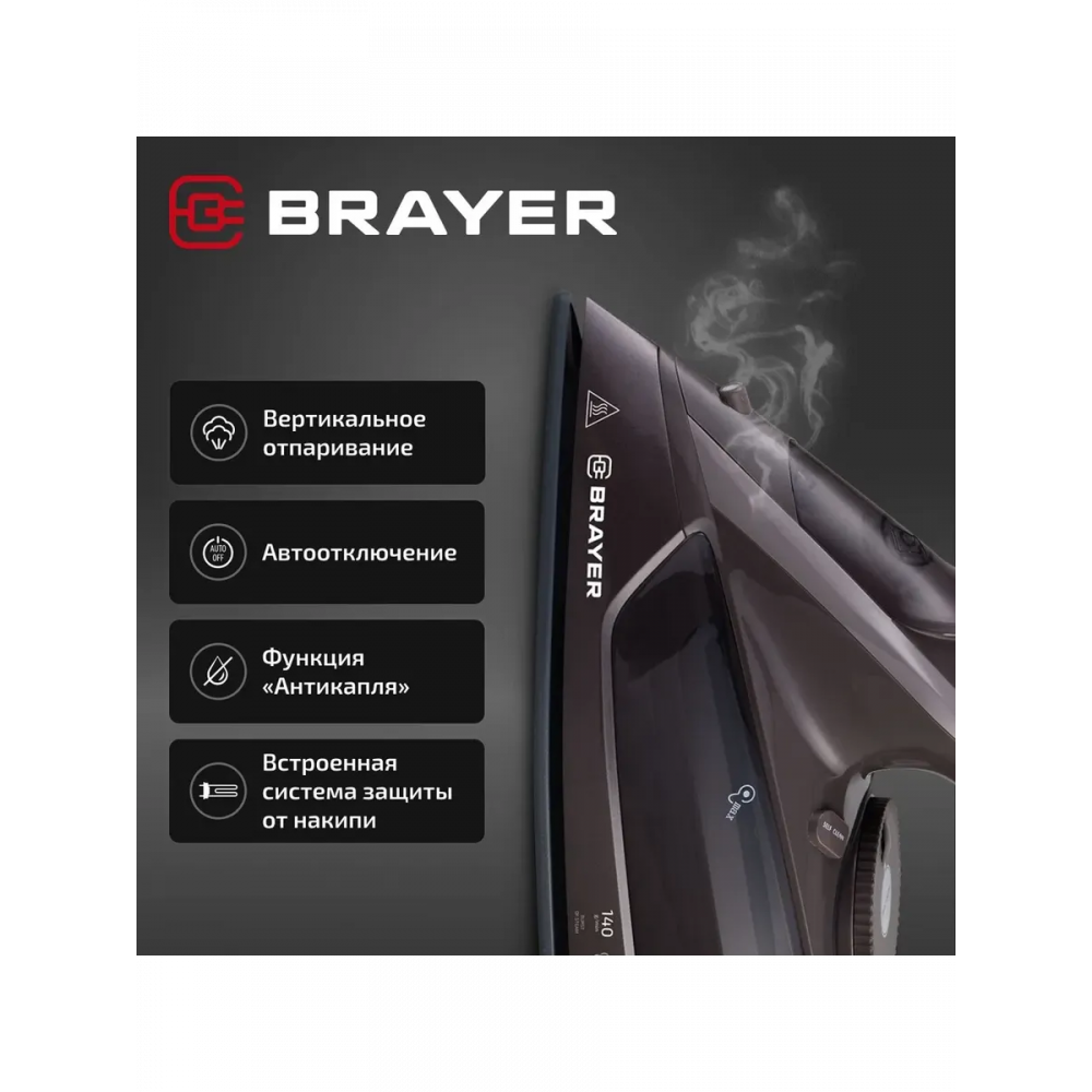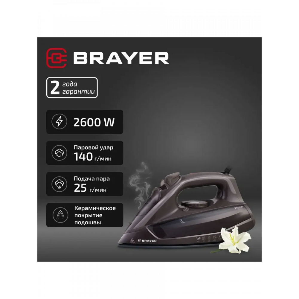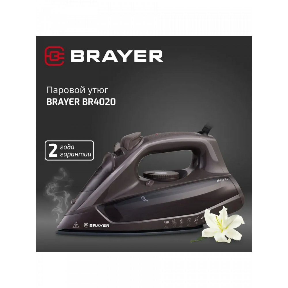 BRAYER 4020BR — утюг с керамической подошвой, мощностью 2600 Вт и резервуаром на 380 мл. Оснащён функцией вертикального отпаривания, паровым ударом 140 г/мин, системой защиты от накипи, автоотключением, функцией самоочистки и противокапельной системой. Идеален для интенсивной глажки любых тканей.