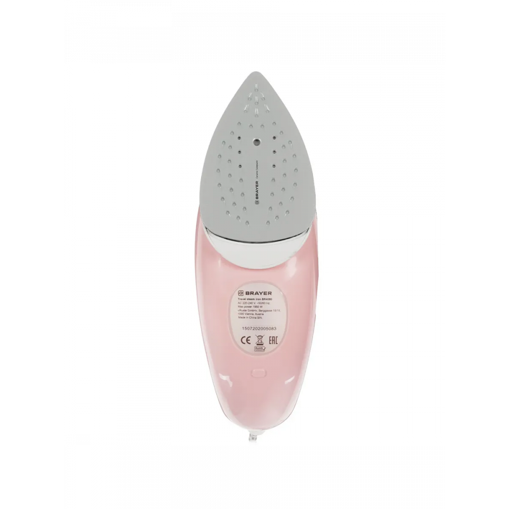 BRAYER 4080BR — дорожный утюг 2 в 1 с функцией вертикального и горизонтального отпаривания. Керамическая подошва, мощность 1950 Вт, резервуар на 250 мл, съёмная паровая щётка и складная ручка делают его идеальным для поездок и компактного хранения.