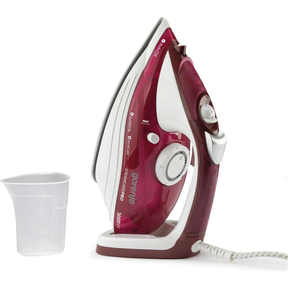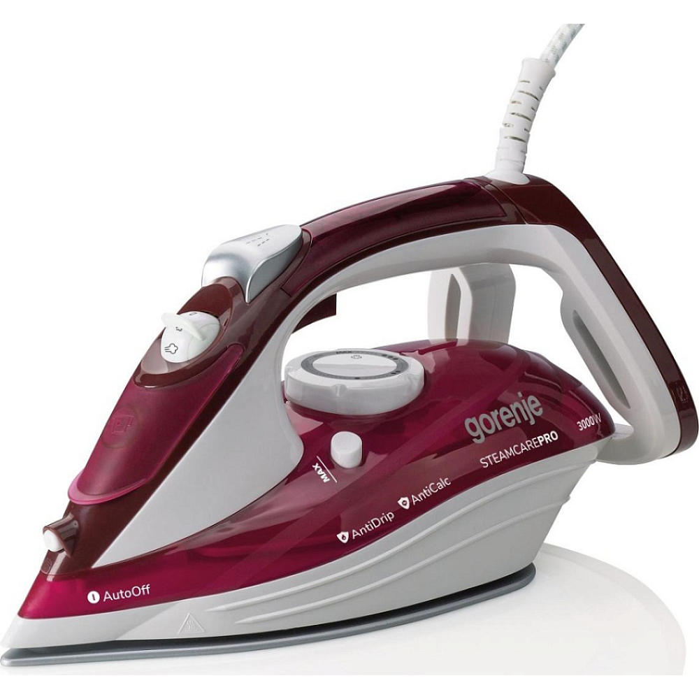 Утюг Gorenje SIH3000RBC имеет высокий уровень защиты. Устройство автоматически отключается, если находится несколько секунд в неподвижном положении. Длинный шнур обеспечивает свободу передвижения, что особенно удобно при разглаживании постельного белья и других объемных вещей. Скорость парового удара составляет 105 г/мин.