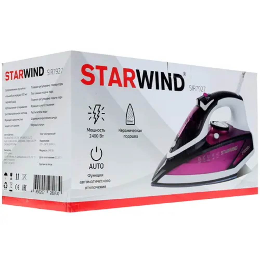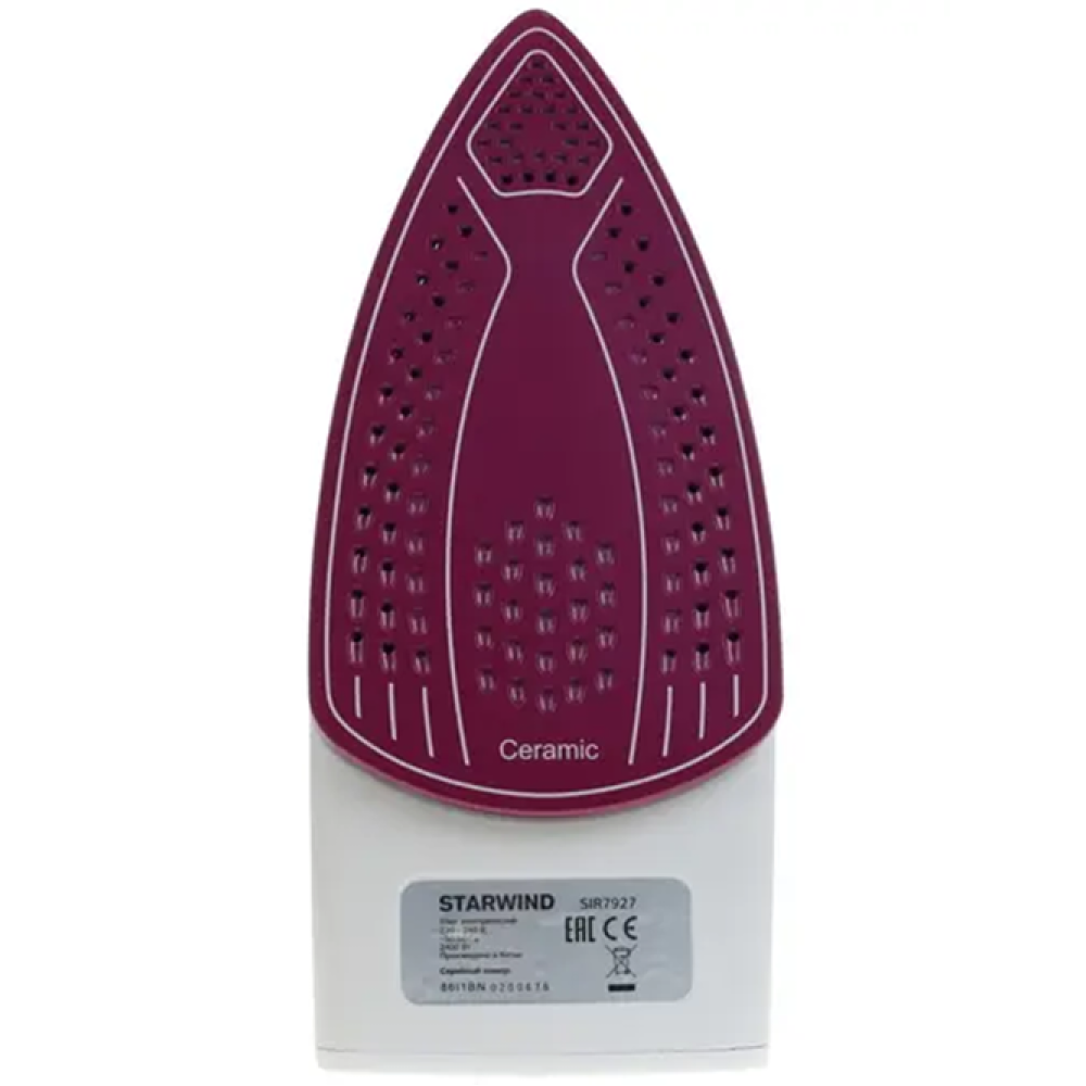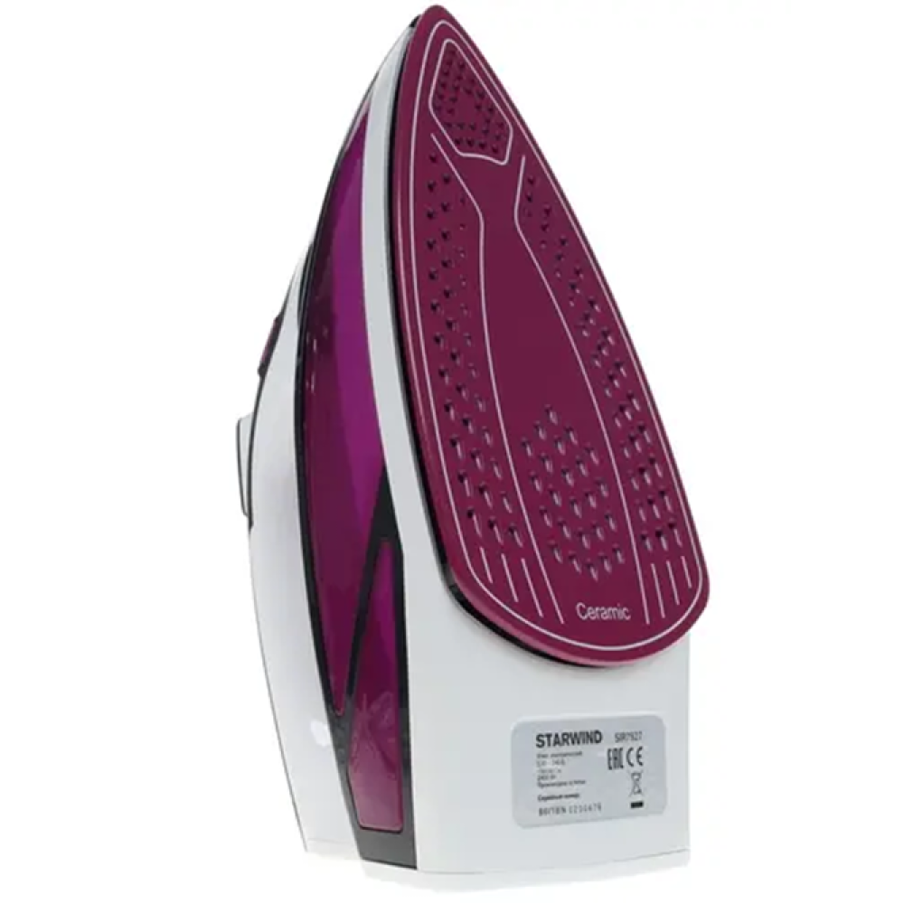 Утюг STARWIND SIR7927 обладает подошвой с керамическим покрытием, которое обеспечивает легкое скольжение устройства по тканям различных видов, препятствуя образованию блестящих следов. Несомненным преимуществом этого домашнего помощника является наличие заостренного носика, позволяющего добраться в наиболее труднодоступные места на одежде, например, к ткани между пуговицами.