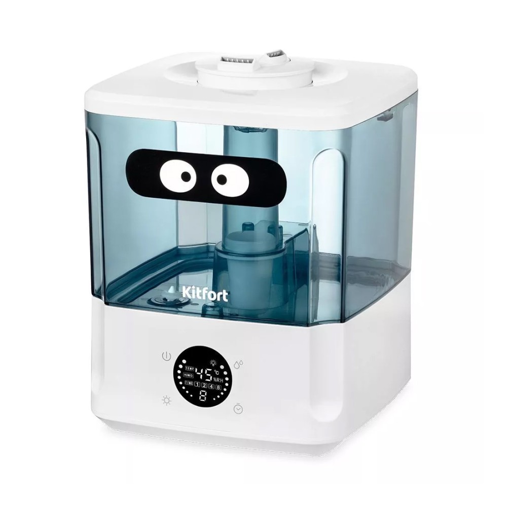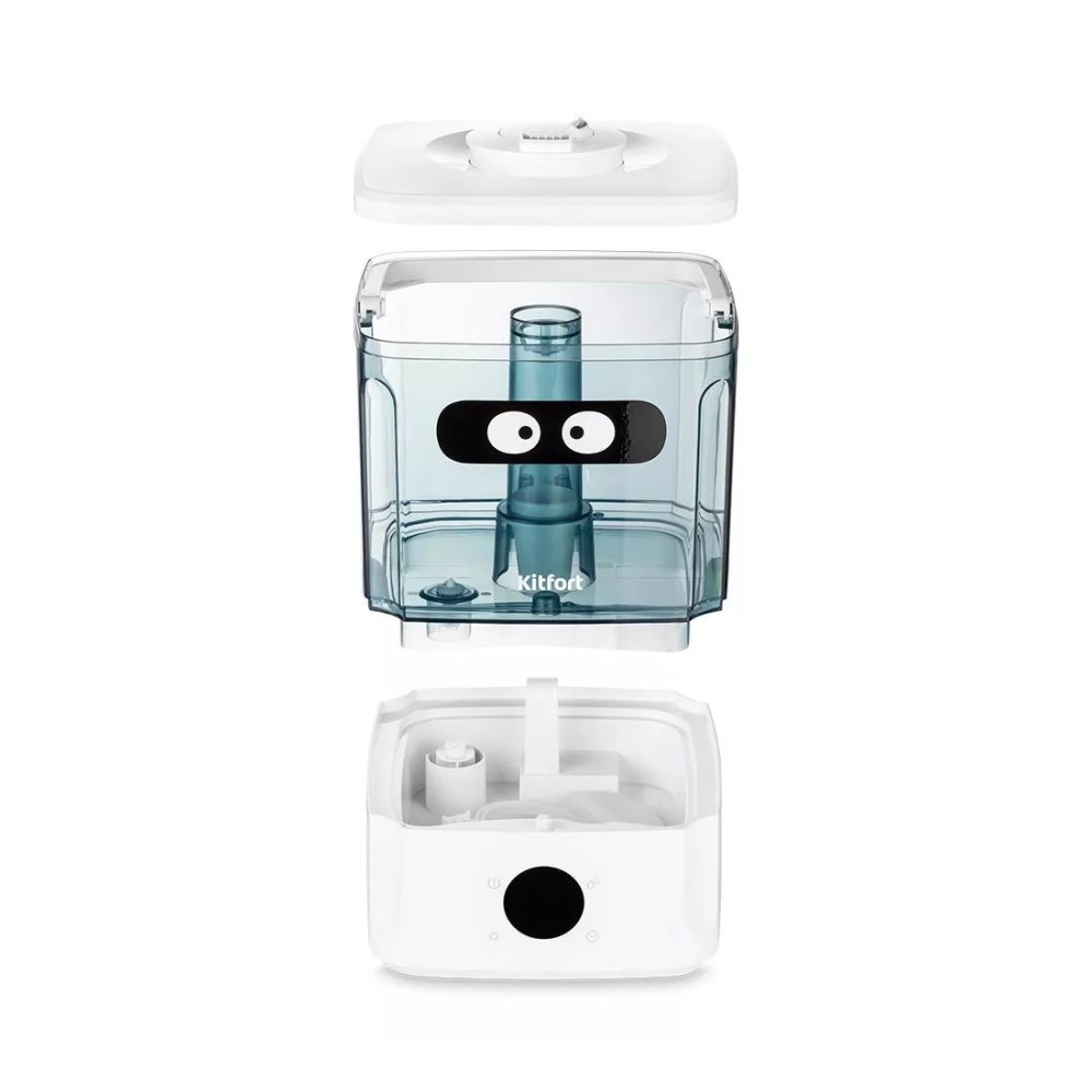 Время непрерывной работы составляет до 12 ч. Расход воды составляет около 350 мл/ч, при необходимости этот показатель регулируется. Направление потока пара меняется для комфорта пользователя. Защита от работы без воды обеспечит увлажнителю продолжительный срок службы. Регулировать работу Kitfort КТ-2876 можно за счет сенсорной панели или пульта ДУ, а также встроенного таймера.