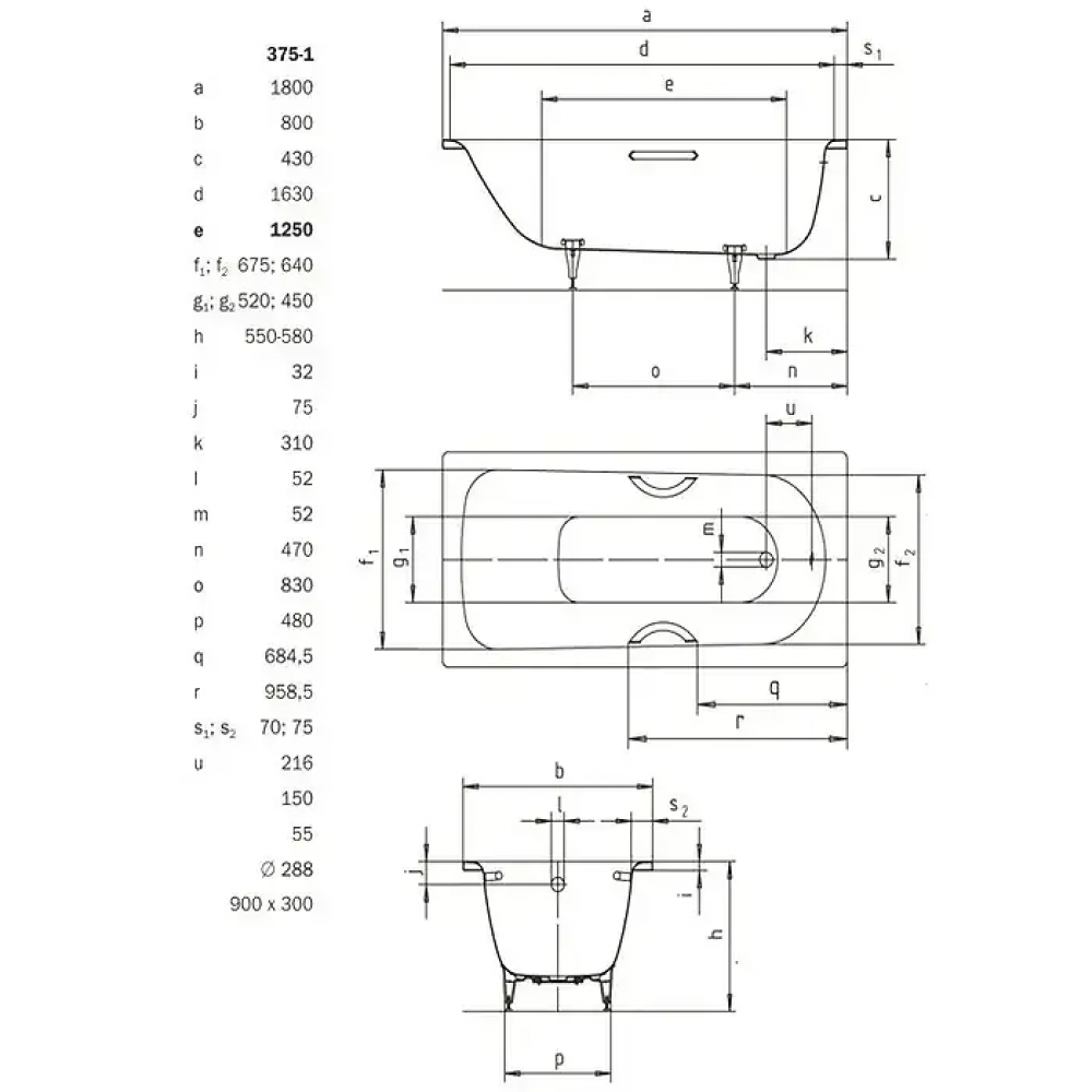 Стальная ванна Kaldewei Saniform Plus 180x80 х 43 см standard mod. 375-1 112800010001 без покрытия (1128.0001.0001)