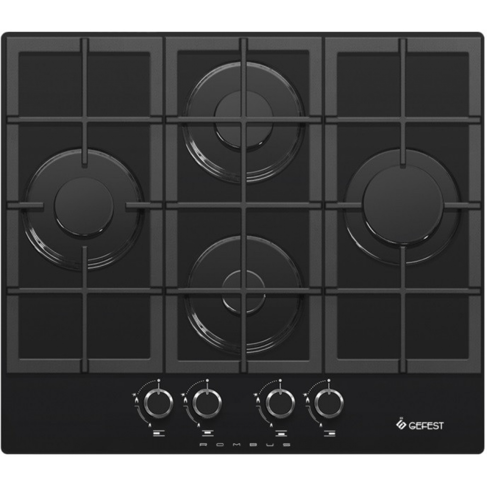 Газовая варочная панель шириной 60 см, стеклянная рабочая поверхность - черного цвета. Управление газовыми горелками осуществляется поворотными переключателями, вынесенными на край панели. Мощность горения определяется пользователем прибора самостоятельно, для экономного горения предусмотрено фиксированное положение - малое пламя. Четыре конфорки оснащены автоматическим электроподжигом, встроенным в ручки управления и газ-контролем. Составные чугунные решетки надежно защищают горелки и выдерживают вес тяжелой металлической посуды.