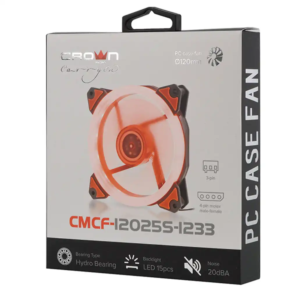 Вентилятор для компьютерного корпуса CMCF-12025S-1233 предназначен для эффективного охлаждения системного блока. Размер 120×120×25 мм обеспечивает оптимальный баланс между производительностью и шумом. Работает на скорости 1650 об/мин, создавая воздушный поток до 29 CFM при уровне шума всего 23 дБ. Оснащён подшипником скольжения и комбинированным разъёмом 3-pin + MOLEX (папа-мама) с кабелем длиной 40+10 см. Дополнительно вентилятор имеет стильную оранжевую LED-подсветку в виде кольца.