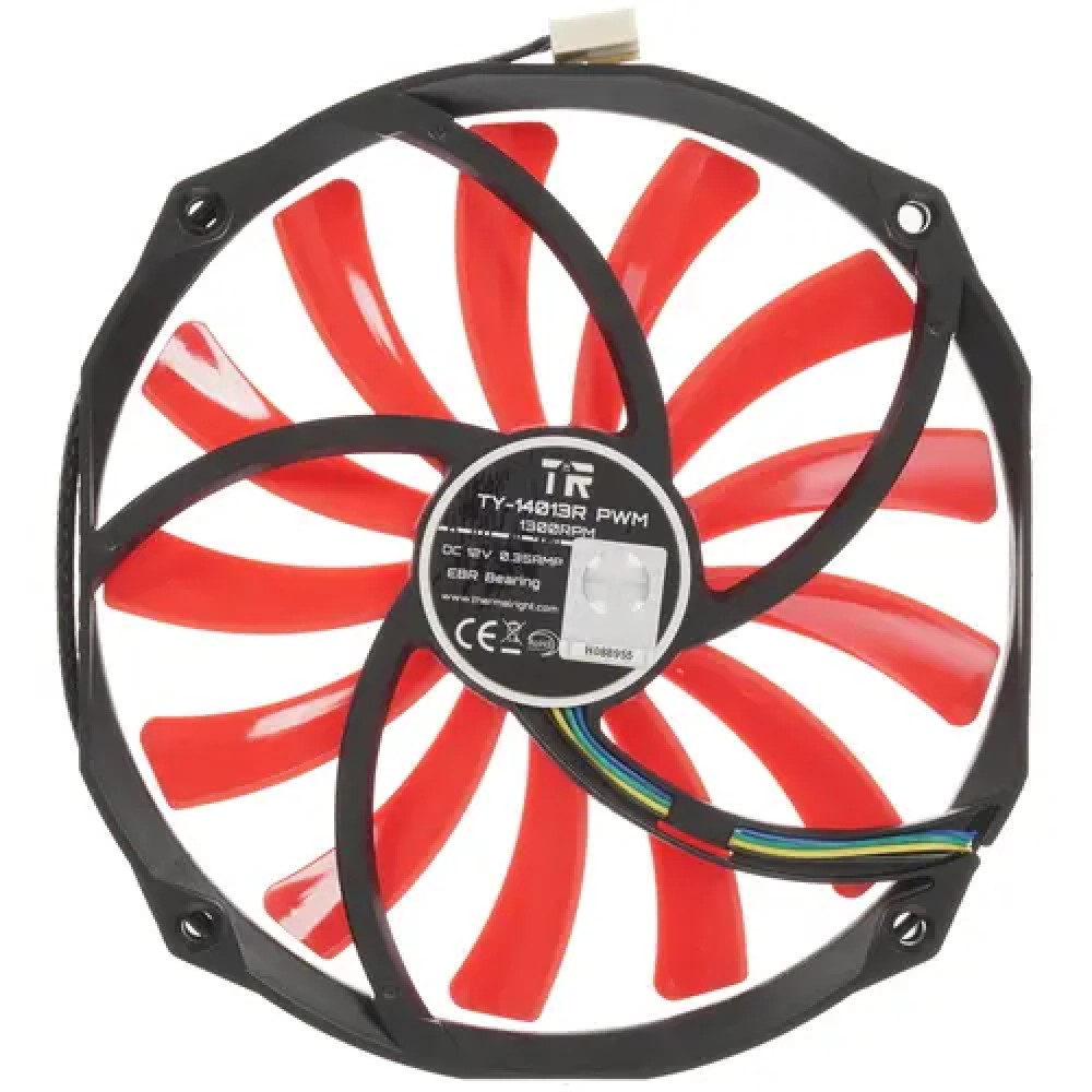 Вентилятор Thermalright TY-14013R с черным каркасом и крыльчаткой красного цвета с 13 лопастями отличается габаритами 150x140x13 мм, являясь практичным компонентом системы охлаждения вашего системного блока. Монтируемый в окно компьютерного корпуса кулер получает питание от разъема 4-pin и поддерживает вращение со скоростью 700-1300 об/мин. Управление рабочими оборотами осуществляется автоматически через широтно-импульсную модуляцию. Штатный кабель для присоединения вентилятора к разъему питания обладает длиной 300 мм.