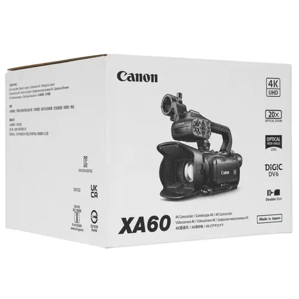 Видеокамера Canon XA60 поддерживает запись на карты памяти формата SD, SDHC, SDXC. Двойные слоты обеспечивают возможность одновременного резервного копирования или релейной записи. В процессе видеосъемки можно делать фотографии в разрешении 3840x2160. Наличие инфракрасного режима предусматривает высокое качество видео при съемке в темноте. 2-канальная AAC обеспечивает четкую запись голосов и звуков. Аккумулятор поддерживает видеокамеру в рабочем состоянии на протяжении 4 ч.