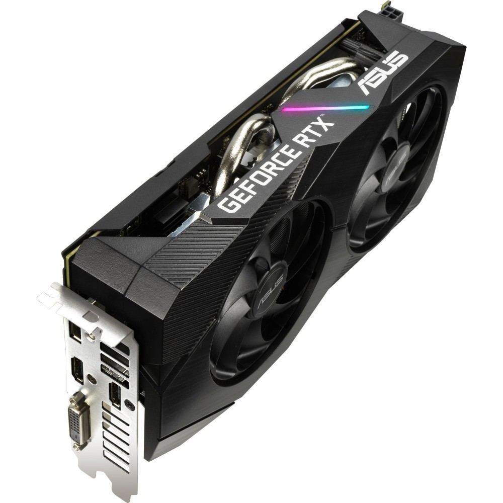 Видеокарта ASUS Dual GeForce RTX 2060 OC EVO [DUAL-RTX2060-O12G-EVO] с поддержкой технологии трассировки лучей обеспечит высокую производительность вашего компьютера в самых разных задачах — будь то игры на высоких настройках графики, монтаж видео или ретушь фото в профессиональных приложениях. В основе данной модели используется чип, выполненный с применением микроархитектуры Turing благодаря которому видеокарта имеет в 6 раз более высокую производительность по сравнению с моделями предыдущего поколения. Он работает в частотном диапазоне от 1365 МГц до 1710 МГц, что вкупе с 12 ГБ встроенной памяти GDDR6 с высокой пропускной способностью позволяет обрабатывать даже самые сложные задачи за считанные секунды. Система охлаждения графического ускорителя представлена 2 осевыми вентиляторами с особой геометрией лопастей. Подключение производится при помощи интерфейса PCI-E, для дополнительного питания используется разъем 8-pin. Для мониторов и другой периферии на корпусе видеокарты предусмотрено 2 выхода HDMI, DVI-D, а также DisplayPort.