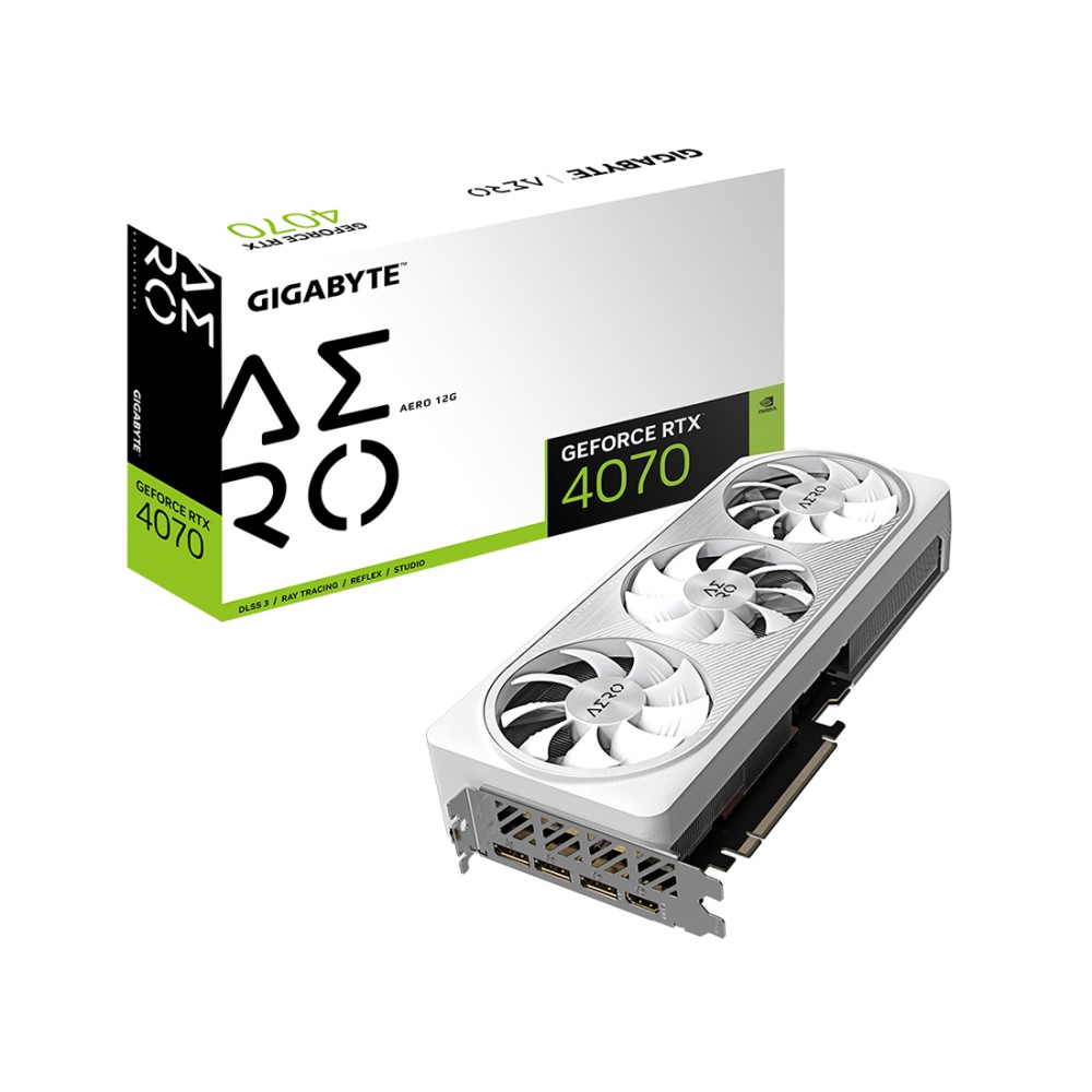 Видеокарта GIGABYTE GeForce RTX 4070 AERO 12G создана для профессиональной рабочей станции и игрового компьютера. Модель выделяется оформлением кожуха в белом цвете и возможностью разгона процессора до 2655 МГц. Благодаря архитектуре Ada Lovelace и 12 ГБ памяти GDDR6X обеспечивается высокая производительность при запуске программ и игр с требовательными настройками. Технология NVIDIA DLSS 3 и трассировка лучей гарантируют реалистичность графики без разрыва кадров.
