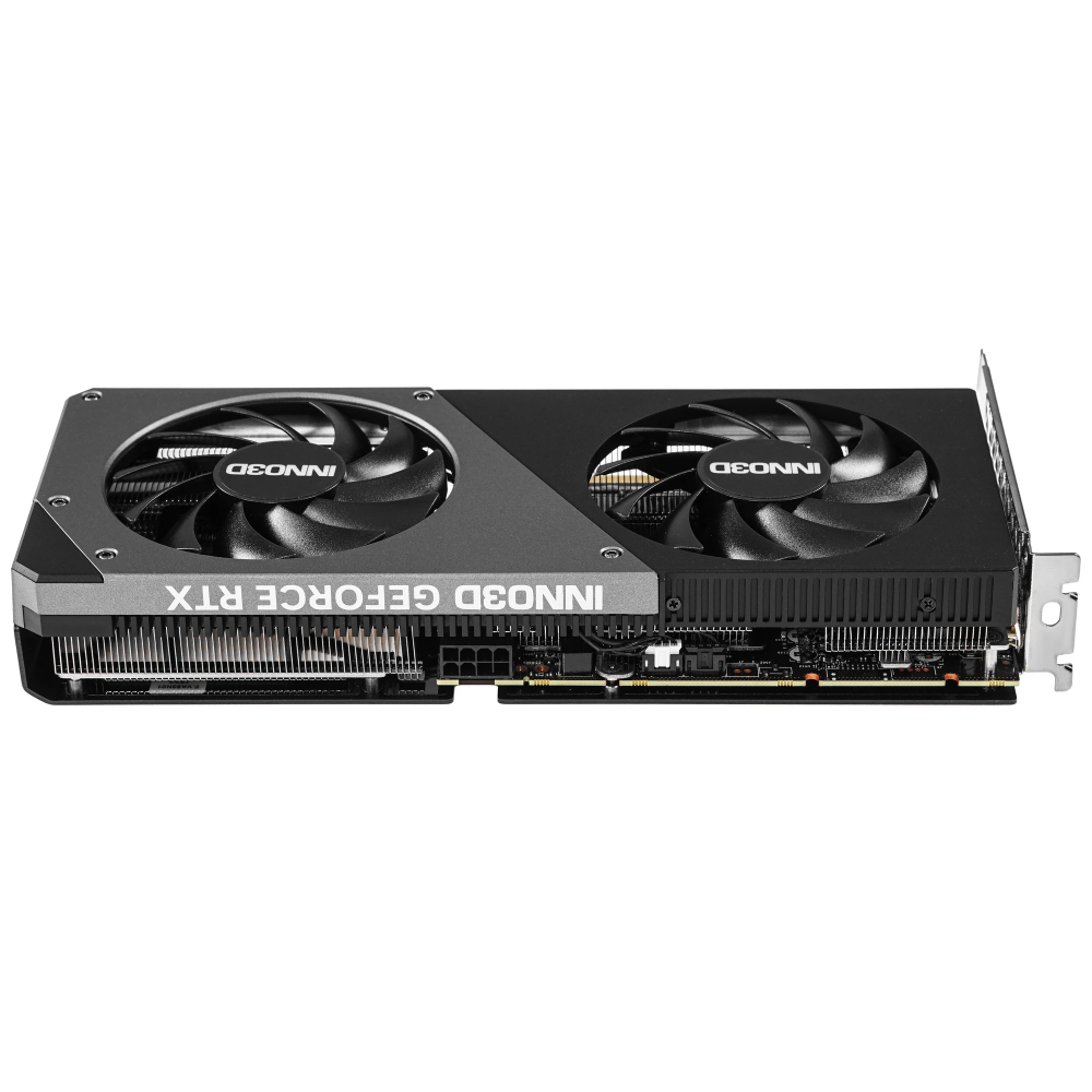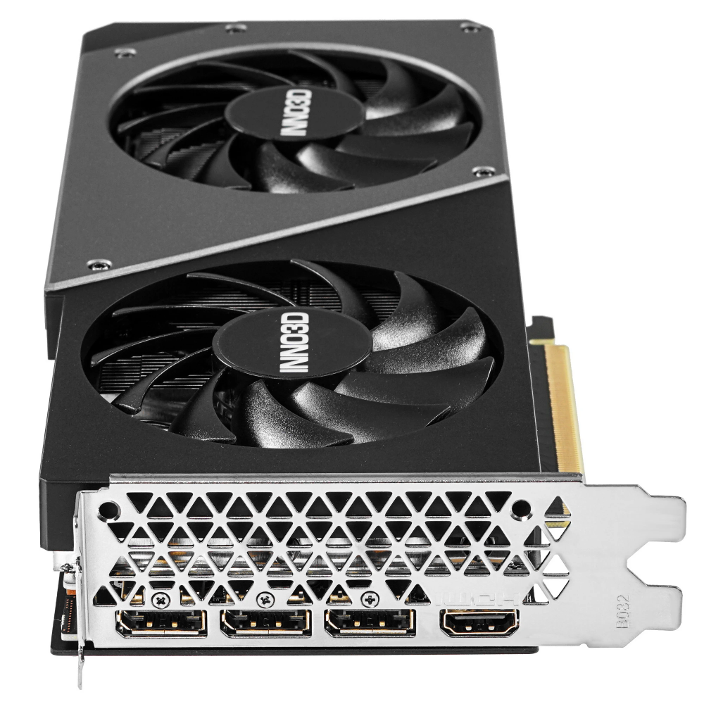 Система охлаждения с двумя вентиляторами диаметром 88 мм, радиатором, медным основанием и тепловыми трубками поддерживает низкий нагрев графического процессора. Защитная металлическая пластина на тыловой стороне улучшает отведение тепла и повышает стойкость конструкции к повреждениям. Для вывода изображения видеокарта Inno3D GeForce RTX 4060 Ti TWIN X2 оснащена 4 разъемами: 3 DisplayPort и 1 HDMI.