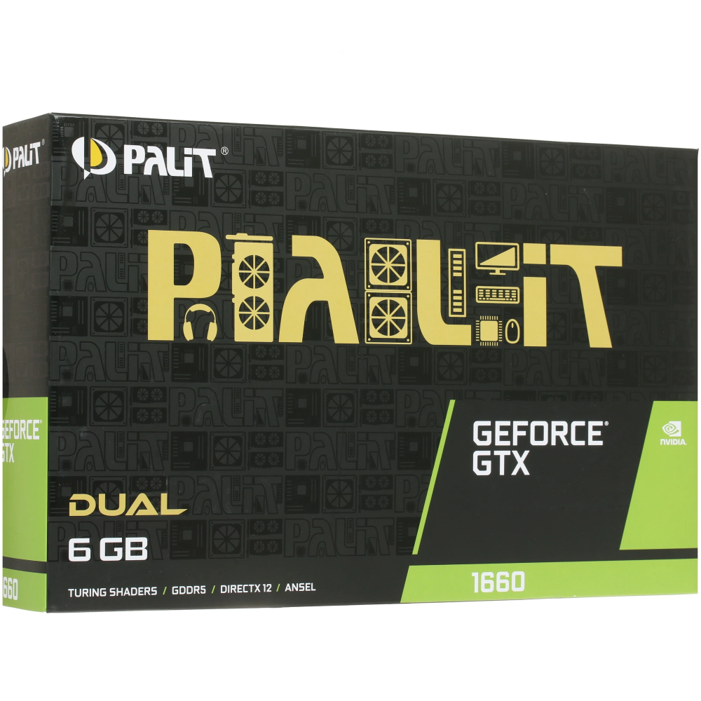 Видеокарта Palit GeForce GTX 1660 DUAL (NE51660018J9-1161C) предназначена для использования в мощных компьютерных системах, при этом обладает компактными размерами. Графический процессор на архитектуре Turing работает с тактовой частотой 1530 МГц, повышаемой до показателя 1785 МГц в режиме вычислительного разгона. Данная версия графического адаптера располагает 6 ГБ памяти стандарта GDDR5 с пропускной способностью 8 Гбит/с.