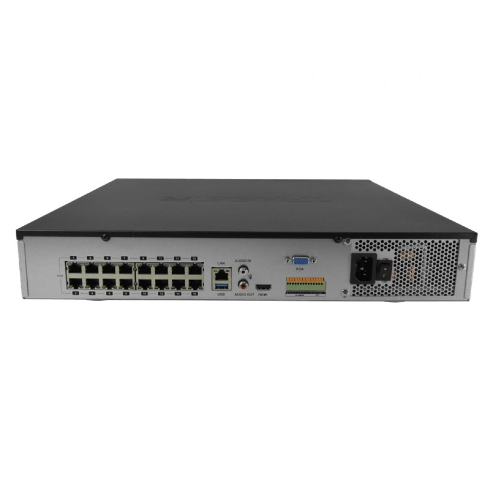 Видеорегистратор поддерживает вывод видео с разрешением до 4K через HDMI и до 2K через VGA. Он также оснащен интерфейсами USB 2.0 и 3.0, аудиовходом и аудиовыходом. Сетевые протоколы включают TCP/IP, ONVIF, RTSP и другие.