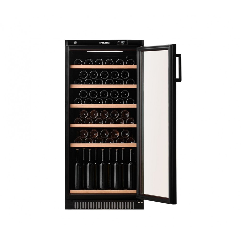 Винный шкаф POZIS ШВ-52 черного цвета предназначен для хранения до 64 бутылок вина при температуре от +5 до +18°C. Модель оснащена компрессорной системой охлаждения, электронным блоком управления и микропроцессорным терморегулятором. Внутреннее пространство включает 6 регулируемых деревянных полок и 1 подставку для вертикального хранения бутылок, что обеспечивает удобное размещение. Тонированное стекло двери защищает вино от воздействия ультрафиолетовых лучей, а угольный фильтр и автоматическая система оттаивания способствуют поддержанию оптимального микроклимата. Дополнительные функции включают светодиодную подсветку, замок и световую индикацию режима работы.