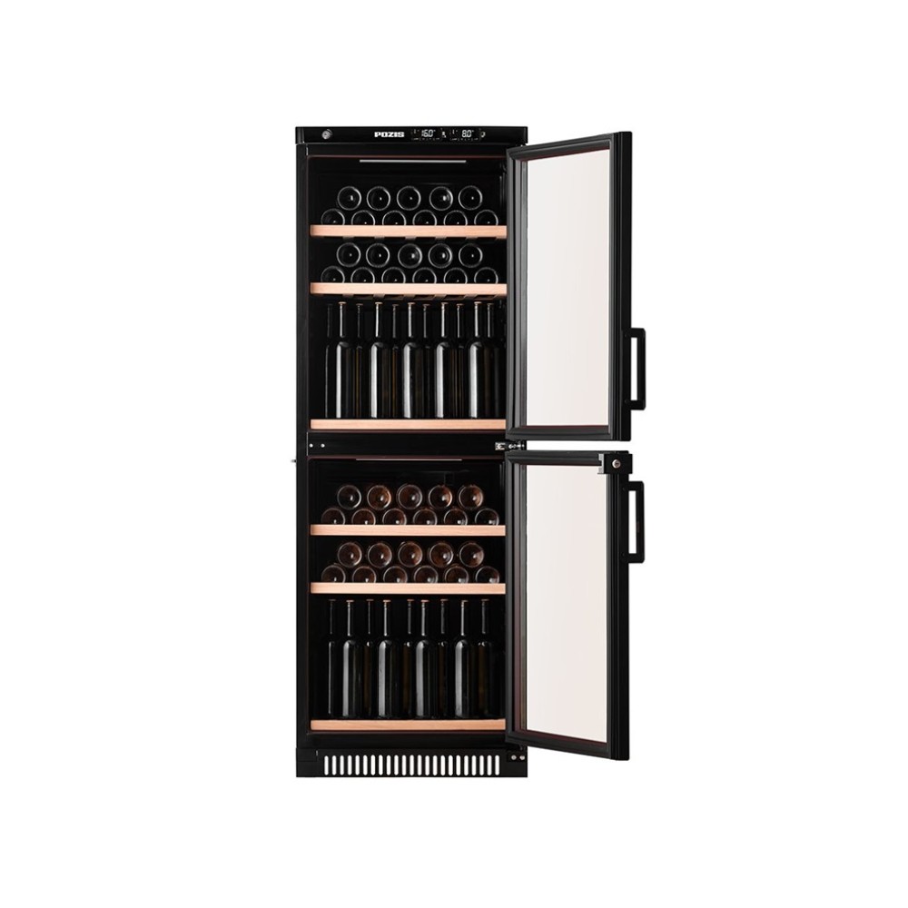 Винный шкаф POZIS ШВД-78 черного цвета предназначен для хранения до 84 бутылок вина при температуре от +5 до +18°C. Модель оснащена компрессорной системой охлаждения, двумя камерами с независимым управлением, электронным блоком управления и микропроцессорным терморегулятором. Внутреннее пространство включает 6 регулируемых деревянных полок и 2 подставки для вертикального хранения бутылок, что обеспечивает удобное размещение. Тонированное стекло дверей защищает вино от воздействия ультрафиолетовых лучей, а угольный фильтр и автоматическая система оттаивания способствуют поддержанию оптимального микроклимата. Дополнительные функции включают светодиодную подсветку, замок и световую индикацию режима работы.