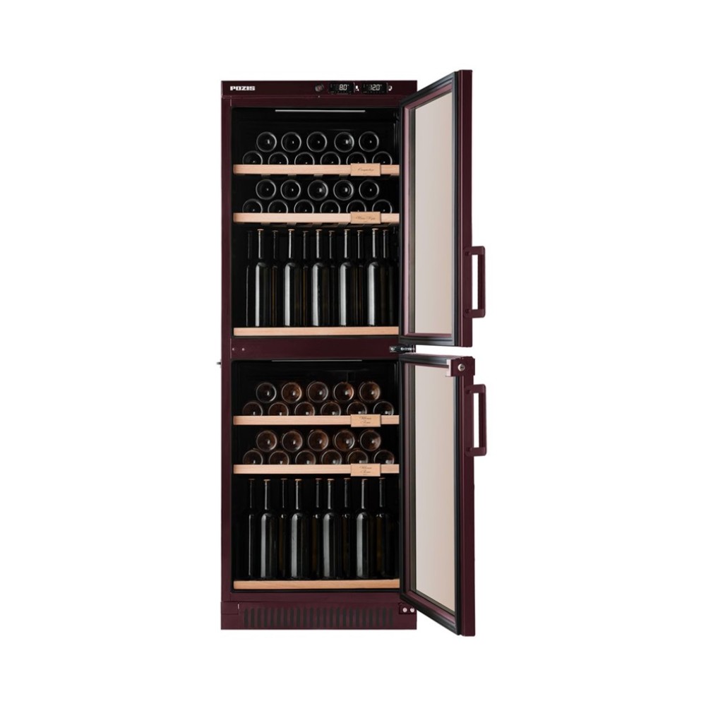 Винный шкаф POZIS ШВД-78 вишневого цвета предназначен для хранения до 84 бутылок вина при температуре от +5 до +18°C. Модель оснащена компрессорной системой охлаждения, двумя камерами с независимым управлением, электронным блоком управления и микропроцессорным терморегулятором. Внутреннее пространство включает 6 регулируемых деревянных полок и 2 подставки для вертикального хранения бутылок, что обеспечивает удобное размещение. Тонированное стекло дверей защищает вино от воздействия ультрафиолетовых лучей, а угольный фильтр и автоматическая система оттаивания способствуют поддержанию оптимального микроклимата. Дополнительные функции включают светодиодную подсветку, замок и световую индикацию режима работы.