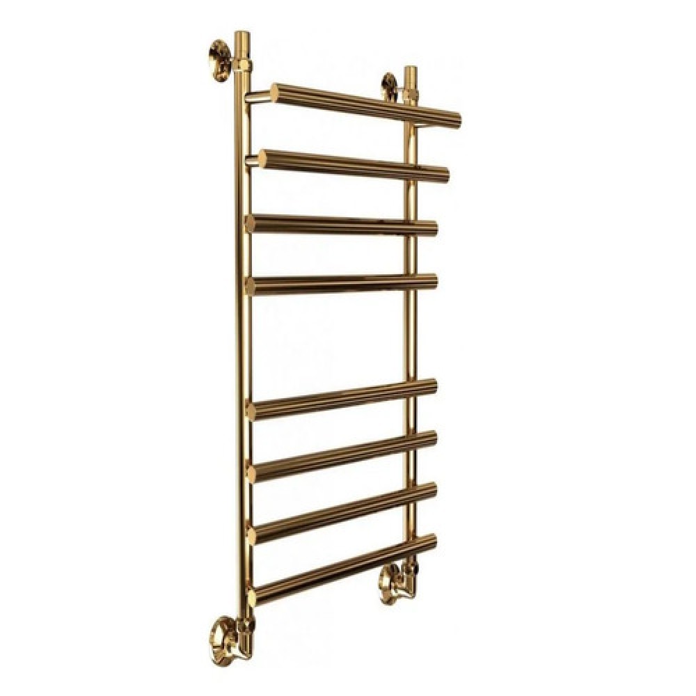 Классический водяной полотенцесушитель «лесенка» размером 800 × 500 мм, выполнен из нержавеющей стали с эффектным покрытием состарённая бронза. Подключается к системе горячего водоснабжения или центрального отопления (резьбовое соединение 1″–½″). Обеспечивает сушку полотенец и умеренный обогрев ванной комнаты.