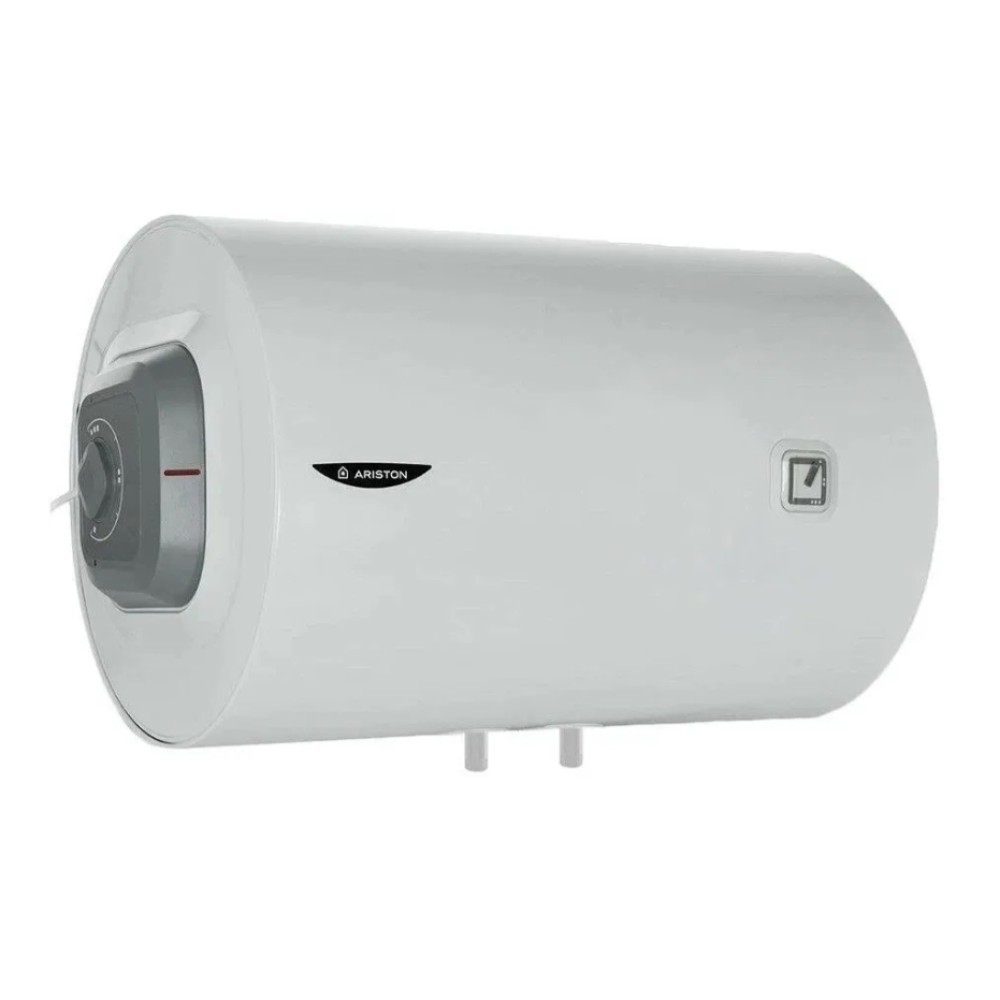 Водонагреватель ARISTON PRO1 R ABS 80 H накопительного типа может устанавливаться горизонтально. Объем бака модели составляет 80 л. Это делает ее подходящей для размещения в большой ванной. Круглый бак модели изнутри покрыт эмалированной сталью. Вода к прибору подводится снизу. Время нагрева полного бака составляет чуть больше 2.5 ч. Это отличный результат, если вы хотите решить вопрос с горячей водой в частном доме, или в вашей квартирной многоэтажке регулярно бывают с ней перебои.Накопительный водонагреватель Ariston PRO1 R ABS 80 H 3700565 предназначен для горизонтального настенного монтажа.