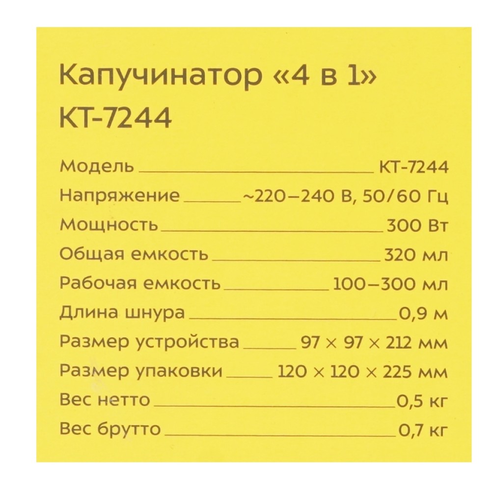 Капучинатор «4 в 1» КТ-7244 – устройство для приготовления молочной пенки, используемой для напитков на базе эспрессо: капучино, латте, латте макиато. Прибор также справится с заваркой чая, кофе, смешением напитков и даже приготовлением йогурта.Капучинатор «4 в 1» КТ-7244 — это устройство для приготовления молочной пенки, используемой для напитков на базе эспрессо: капучино, латте и латте макиато. Данная модель капучинатора многофункциональна и поможет также заварить разные виды чая, кофе, смешать напитки и приготовить йогурт.