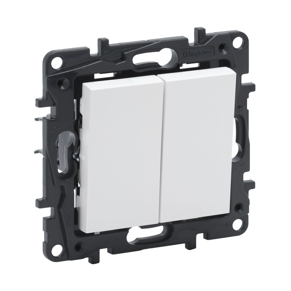 Переключатель двухклавишный крестовой Niloe Step предназначен для управления двумя независимыми источниками света или электрическими приборами из нескольких точек. Он рассчитан на ток до 10А. Выполненный в элегантном белом цвете, переключатель придаёт современный и стильный внешний вид, идеально подходящий для любого интерьера. Переключатель изготовлен из высококачественного материала, что гарантирует его долговечность и устойчивость к механическим повреждениям. Автоматические клеммы обеспечивают быстрое и безопасное подключение проводов.